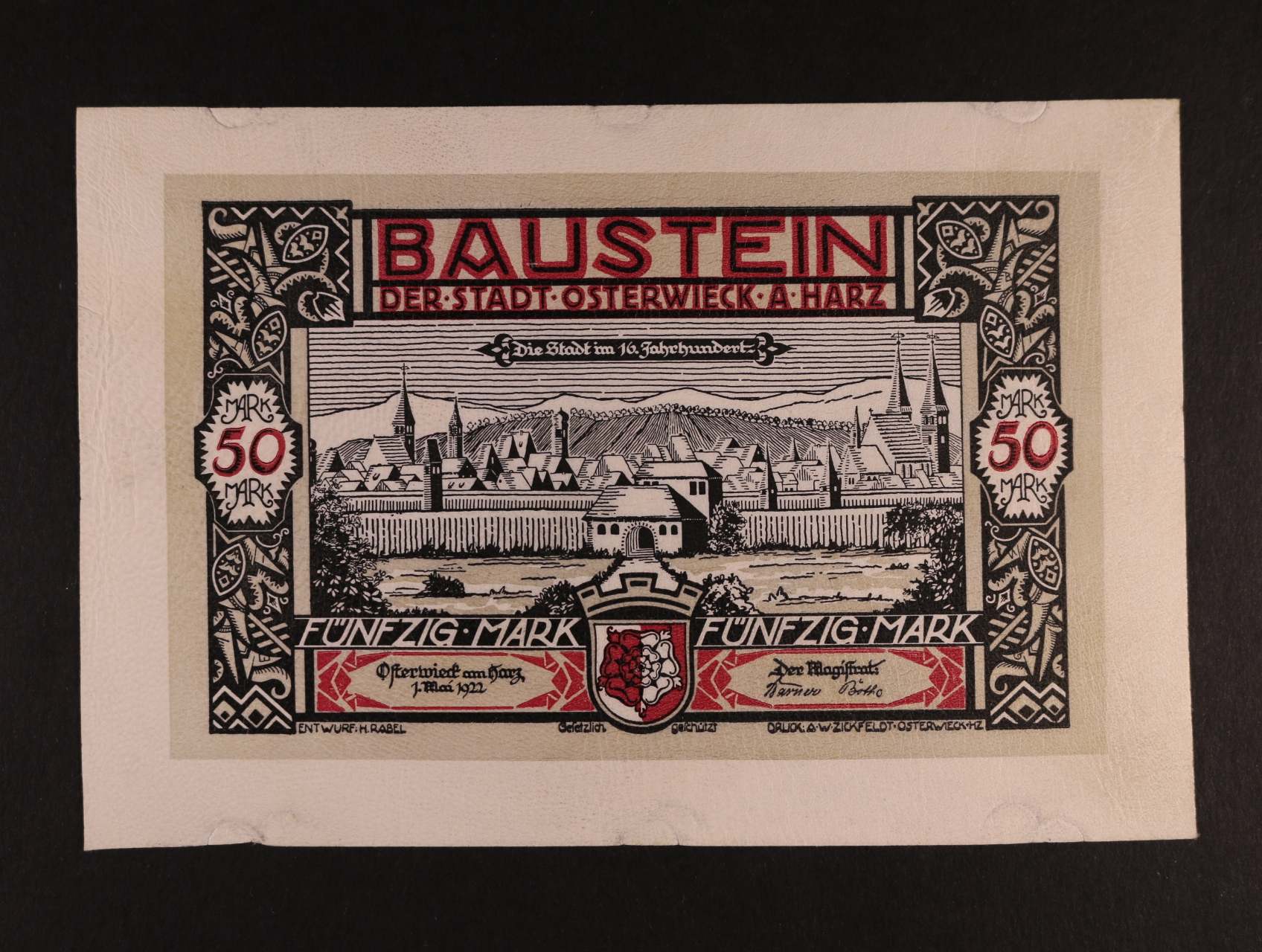 2483 Osterwieck am Harz, 50 Mark 1.5.1922 kůže, Grab. 353, stopy po uchycení 300