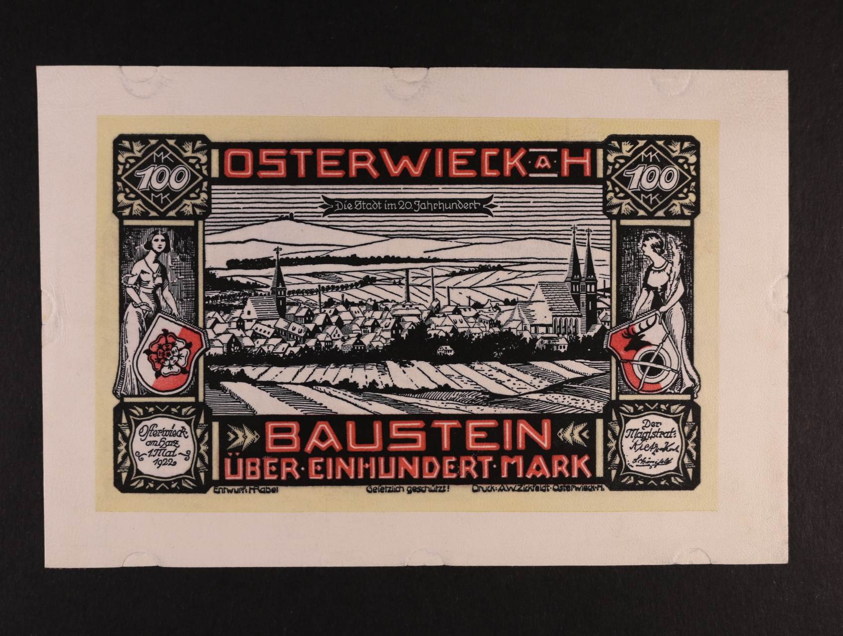 2484 Osterwieck am Harz, 100 Mark 1.5.1922 kůže, Grab. 356, stopy po uchycení 350