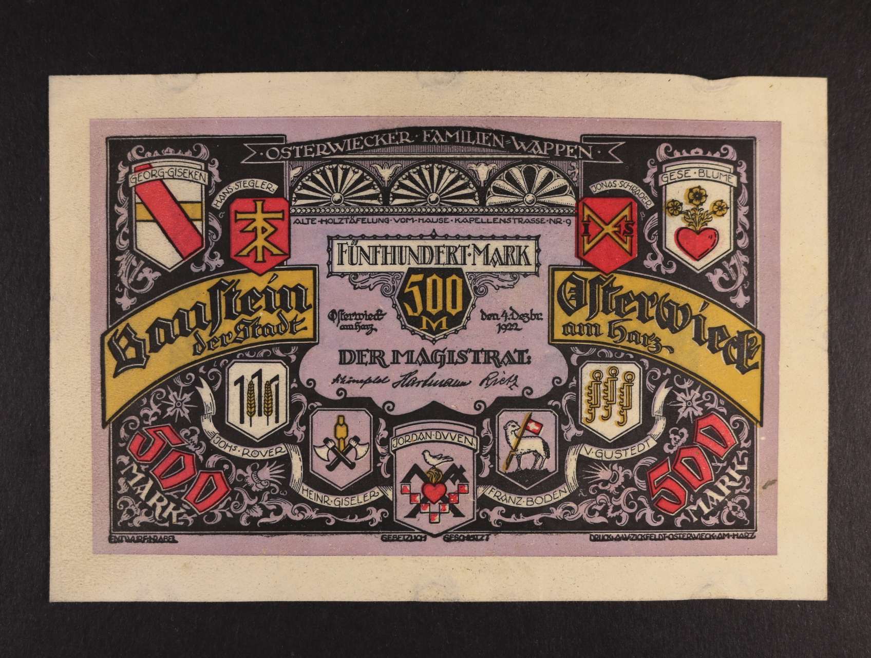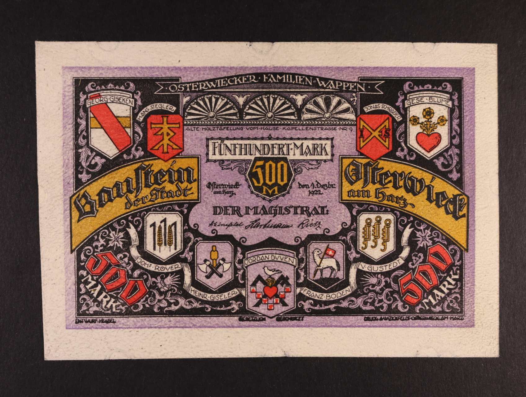 2486 Osterwieck am Harz, 500 Mark 4.12.1922 kůže, série Nr. 170 + podpis, Grab. 363.a, stopy po uchycení 600