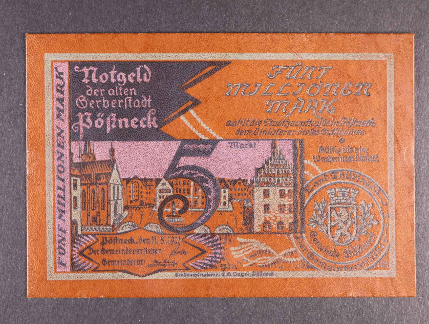 2492 Pössneck, 5 Millionen Mark 11.8.1923 kůže, Grab. 453, stopy po uchycení 200
