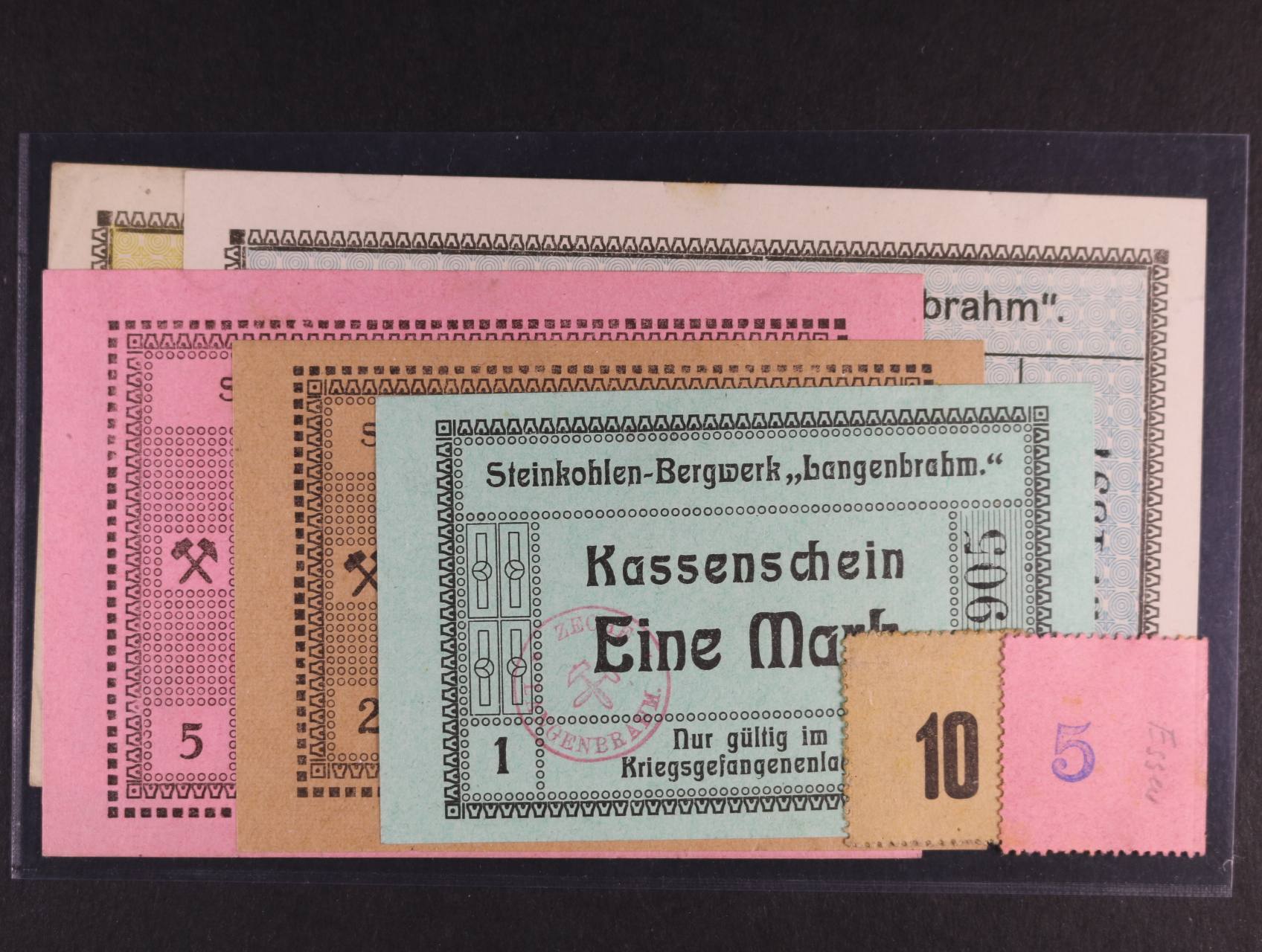 2495 Essen, 5 pf, 10 pf, 1 M, 2 M, 5 M, 10 M, 20 M b.d., Steinkohlen - Bergwerk "Langenbrahm", Ti. 220.01, 02, 03, 04, 05, 10, 20 500