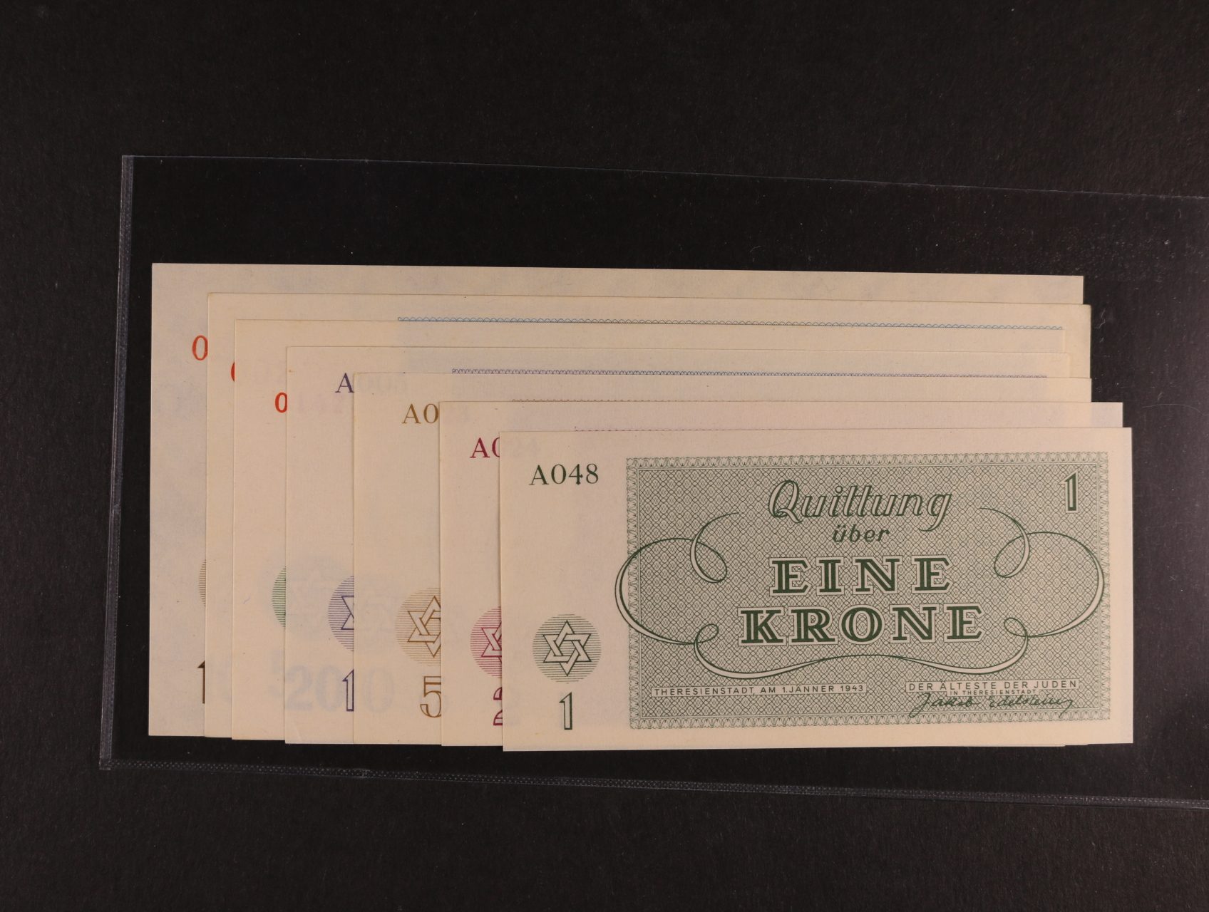 2498 Theresienstadt (Terezín) 1 K - 100 K 1.1.1943 sada 7ks, Ba. 311.4.1 - 7, Pi.-Si. 25 - 35 1500