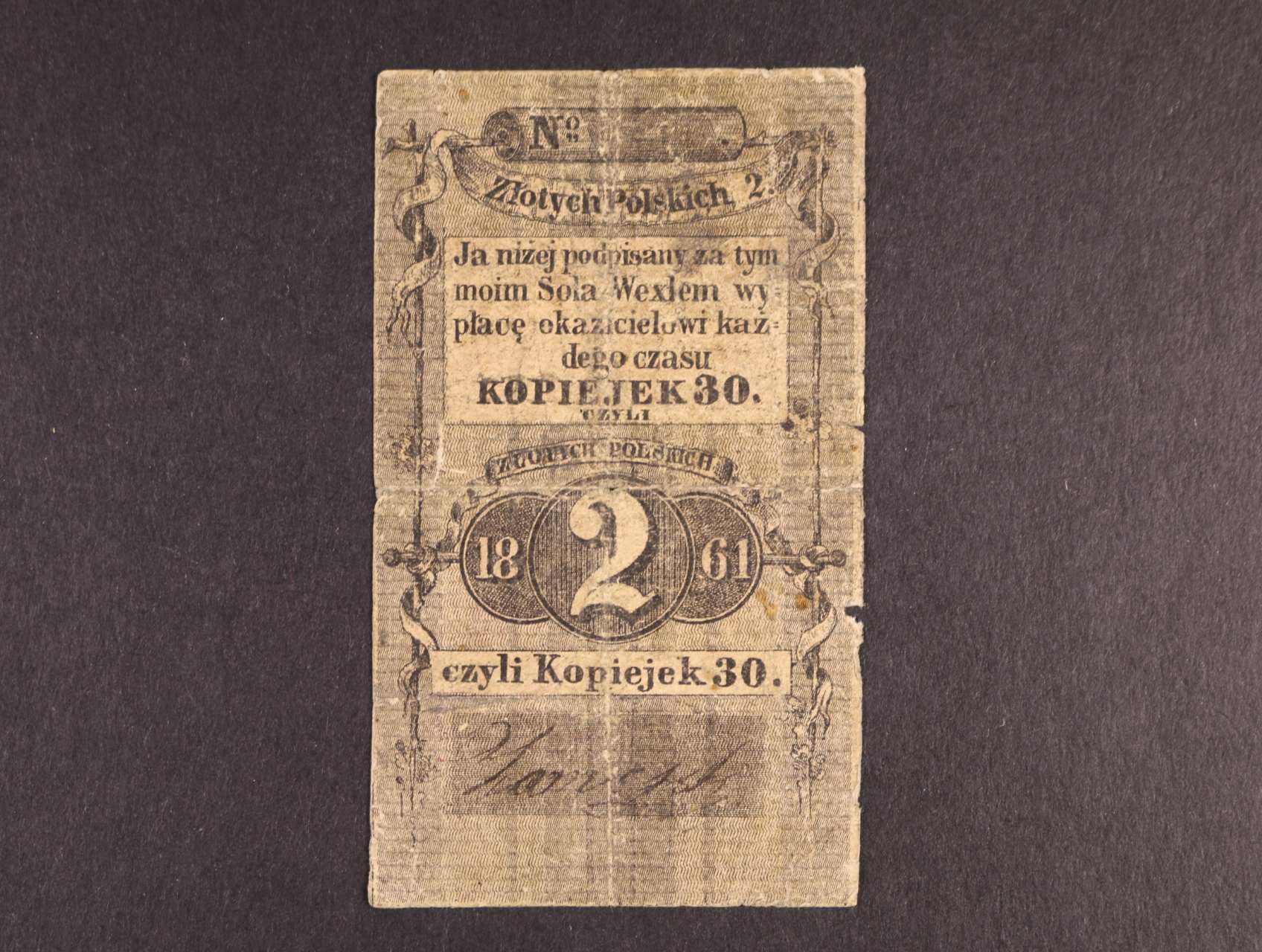 2511 nouzovka bez místa vydání, 2 zlote = 30 kopejek 1861 500