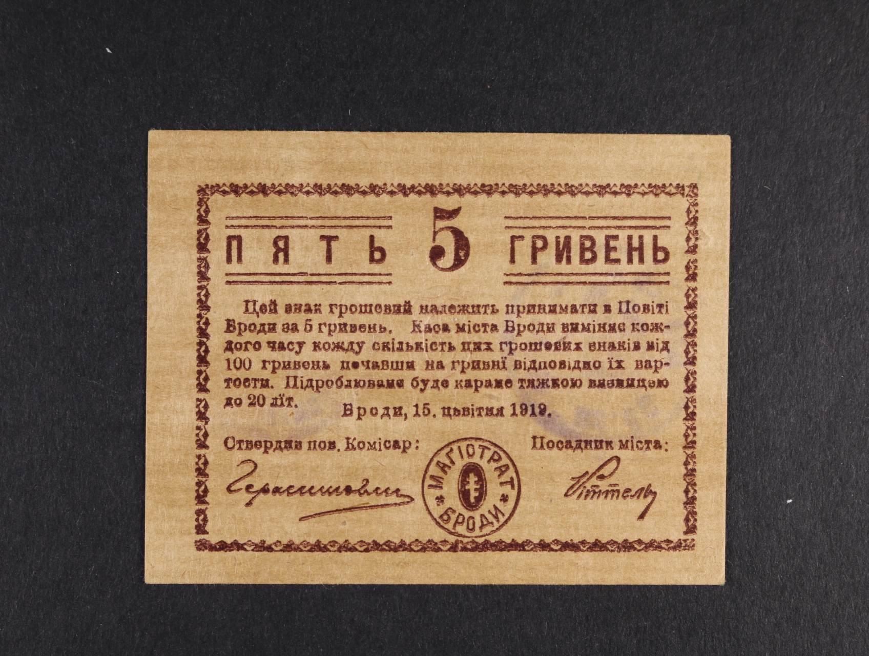 2515 Brody, 5 Hr. 15.4.1919 Mahistrat, Pod. G-029.3.a 200