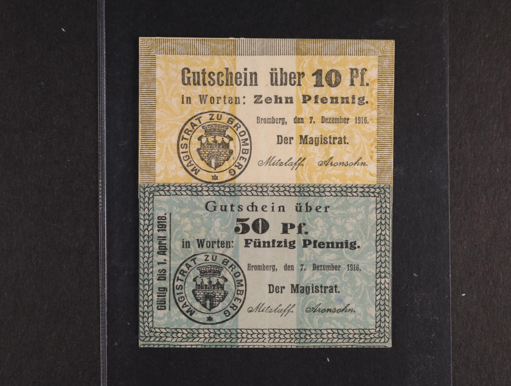 2516 Bromberg (Bydgoszcz), 10 Pf (bez data platnosti)., 50 Pf. (s datem platnosti) 7.12.1916 Der Magistrat, Pod. P-009.B.2, C.1 400
