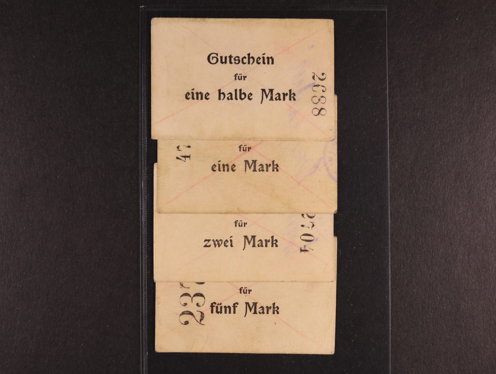 Neustadt bei Pinne (Lwówek), 1/2 M (2x), 1 M (2x), 2 M, 3 M b.d. (1914) Magistrat, Pod. P-093.A.1, 2, 3, 4, celkem 6ks