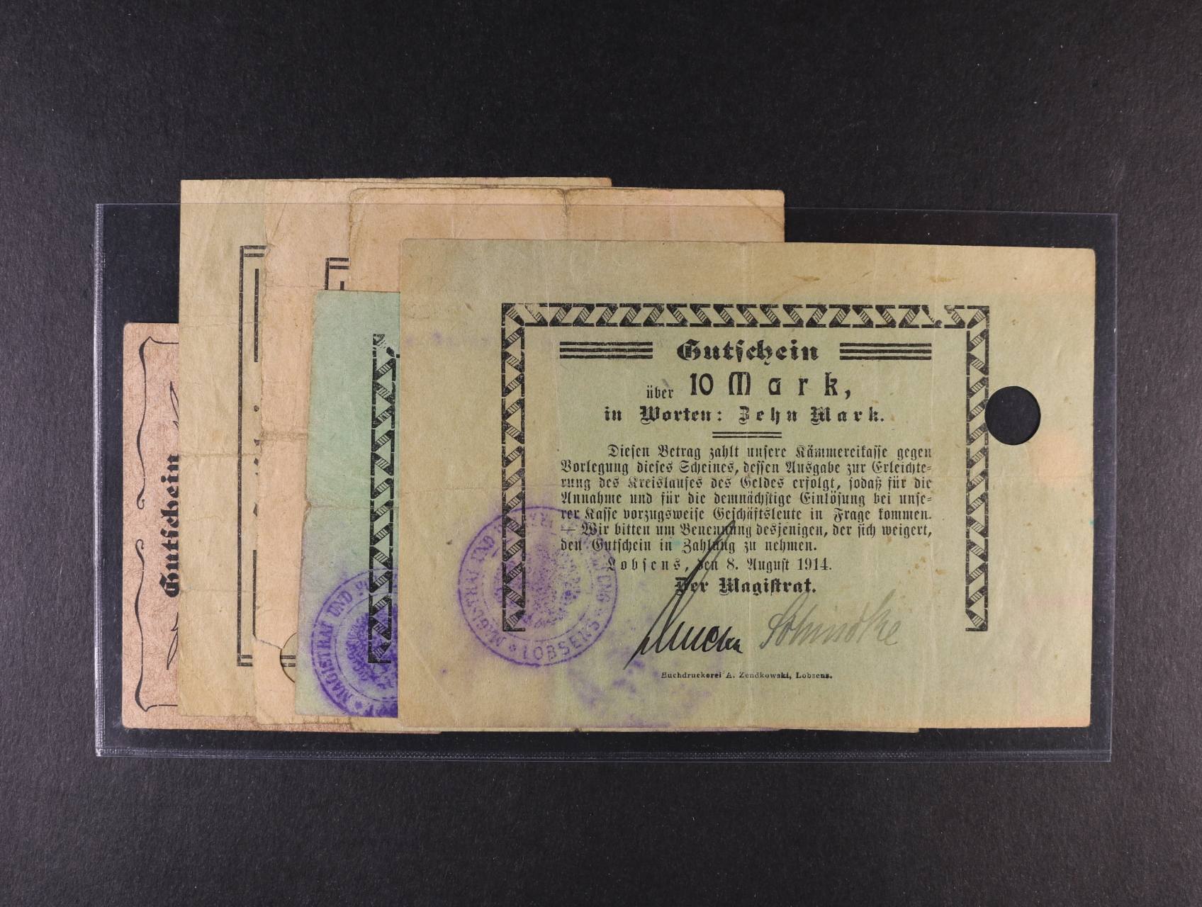 Lobsens (Lobženica), 1/2 M, 1 M, 2 M, 3 M, 5 M, 10 M 8.8.1914 Der Magistrat, vše s perf. otvorem, kompletní sada, Pod. P-096.A.2, 3, 4, 5, 6, A2.1