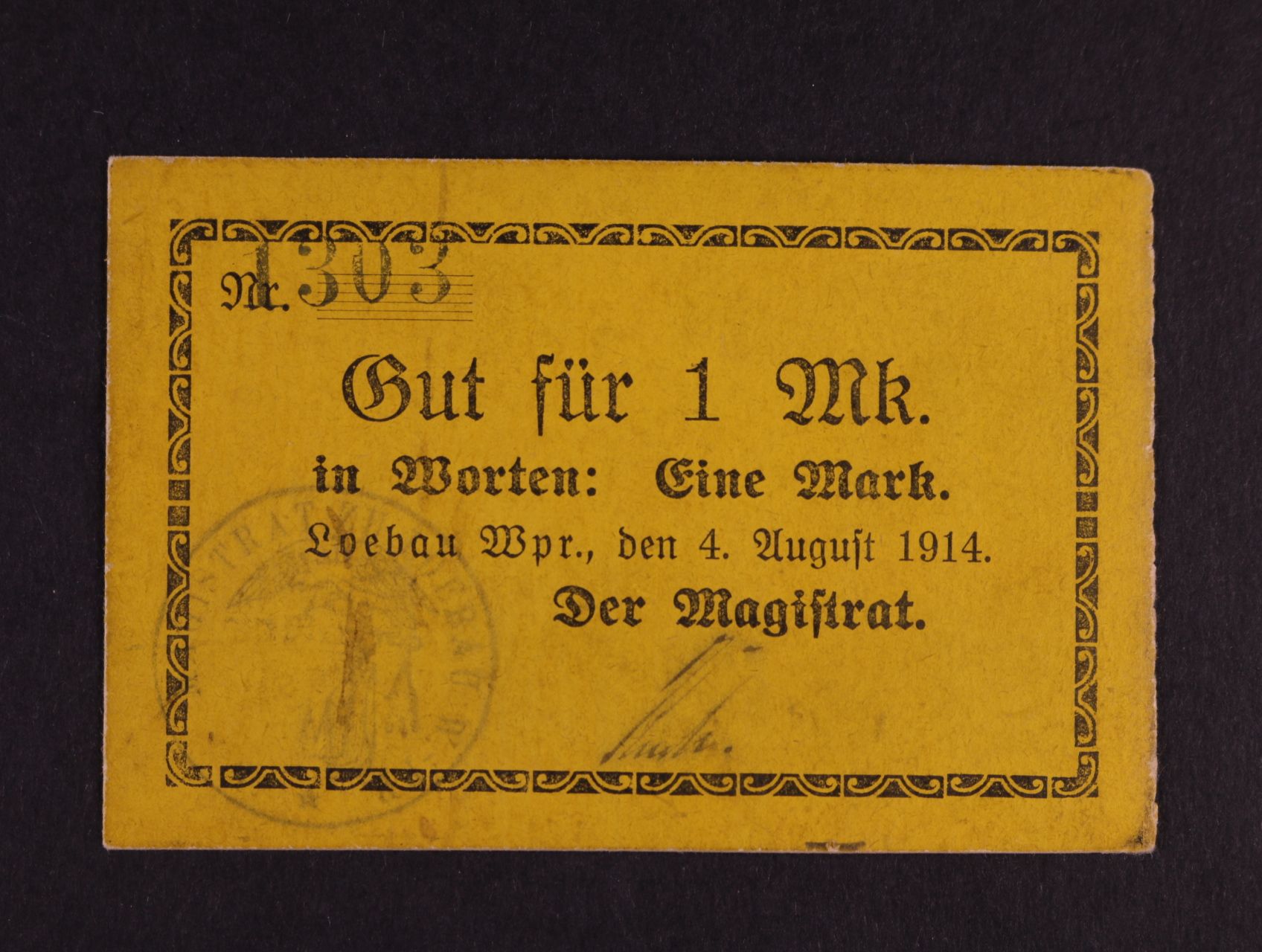 Loebau Wpr (Lidzbark), 1 M 4.8.1914 Magistrat, Pod. W-028.2