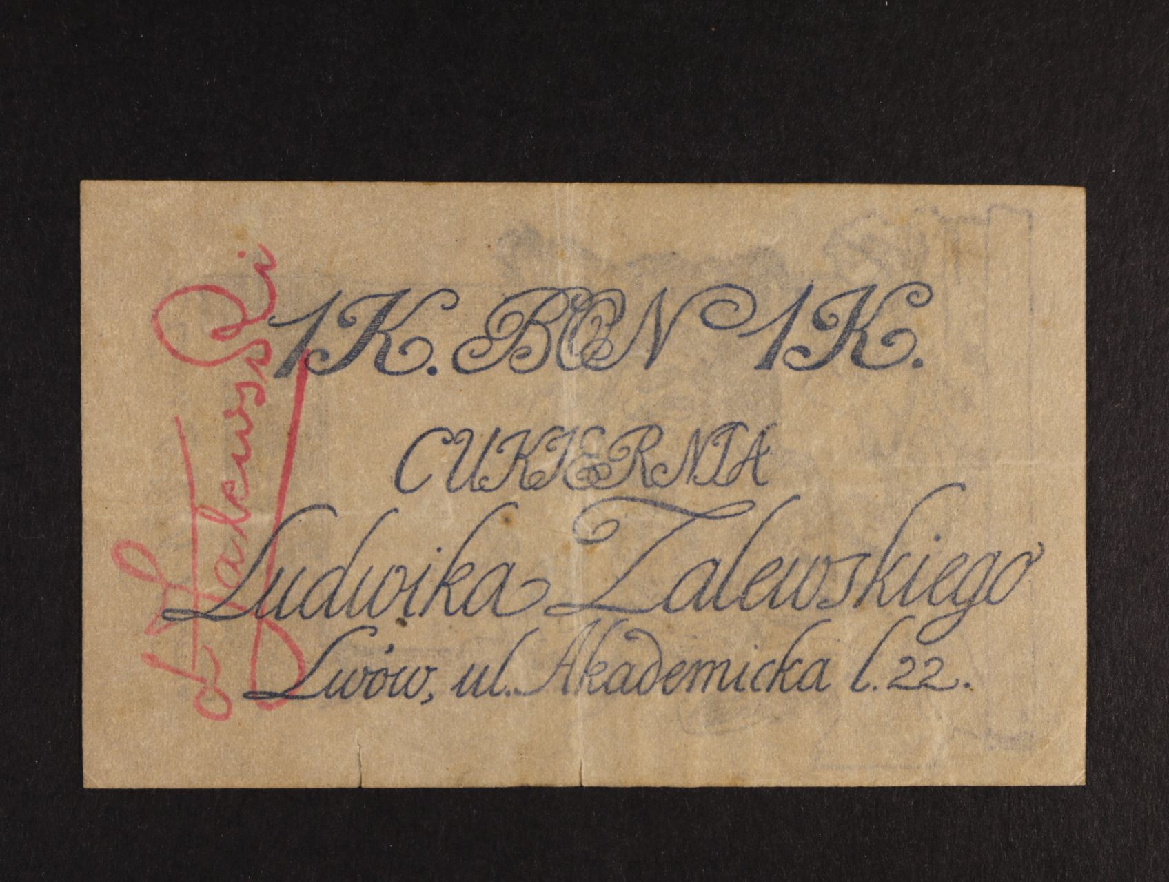 Lwów, 1 K b.d. (1918) Cukiernia Ludwika Zalewskiego, Pod. G-207.A.8