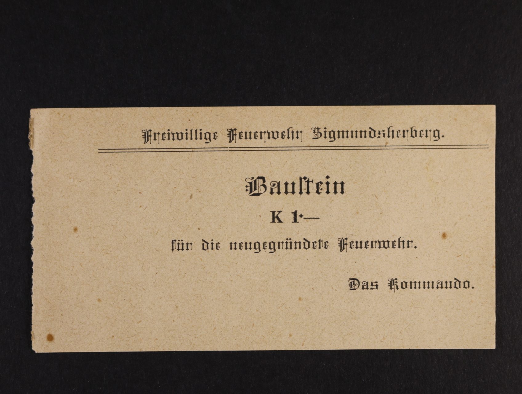 Rakousko Uhersko - Sigmundsherberg, Baustein 1 K (cihla) na stavbu požární zbrojnice