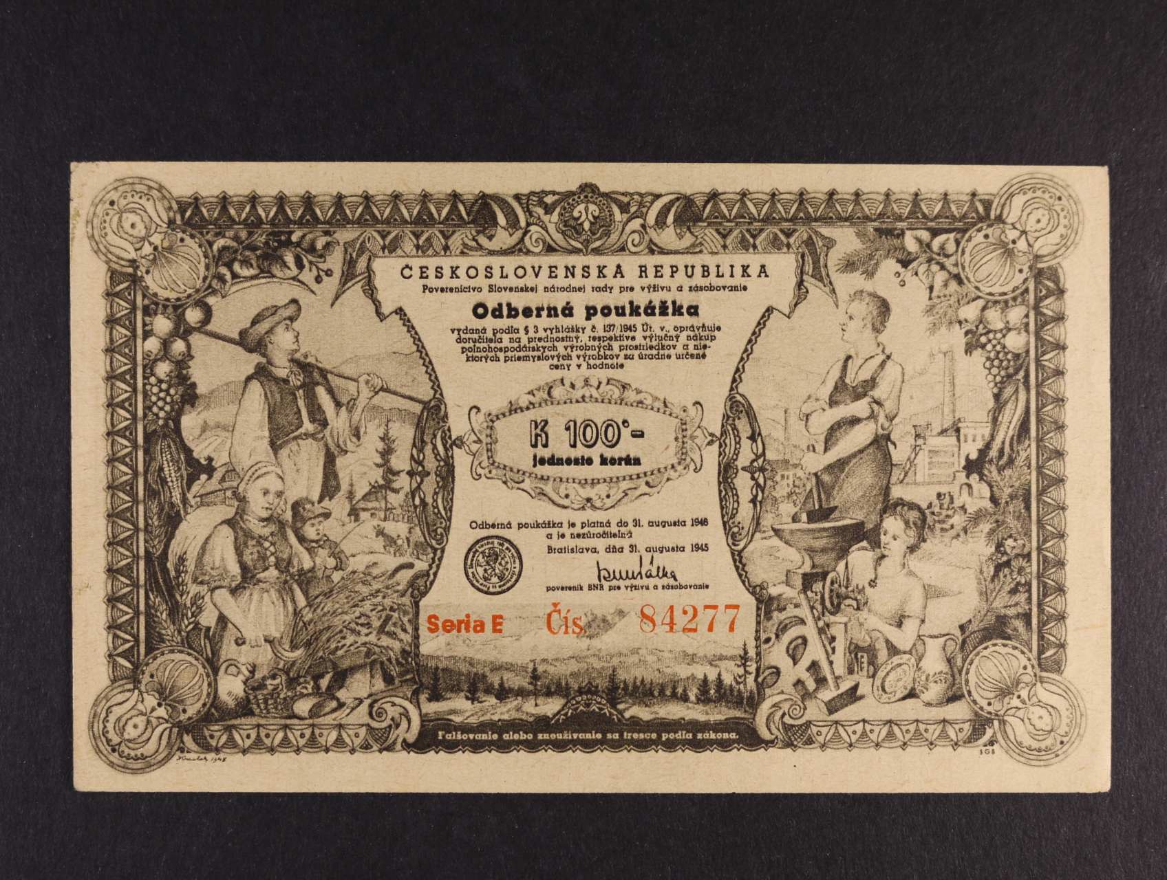 odberná poukážka 100 K Bratislava 1945