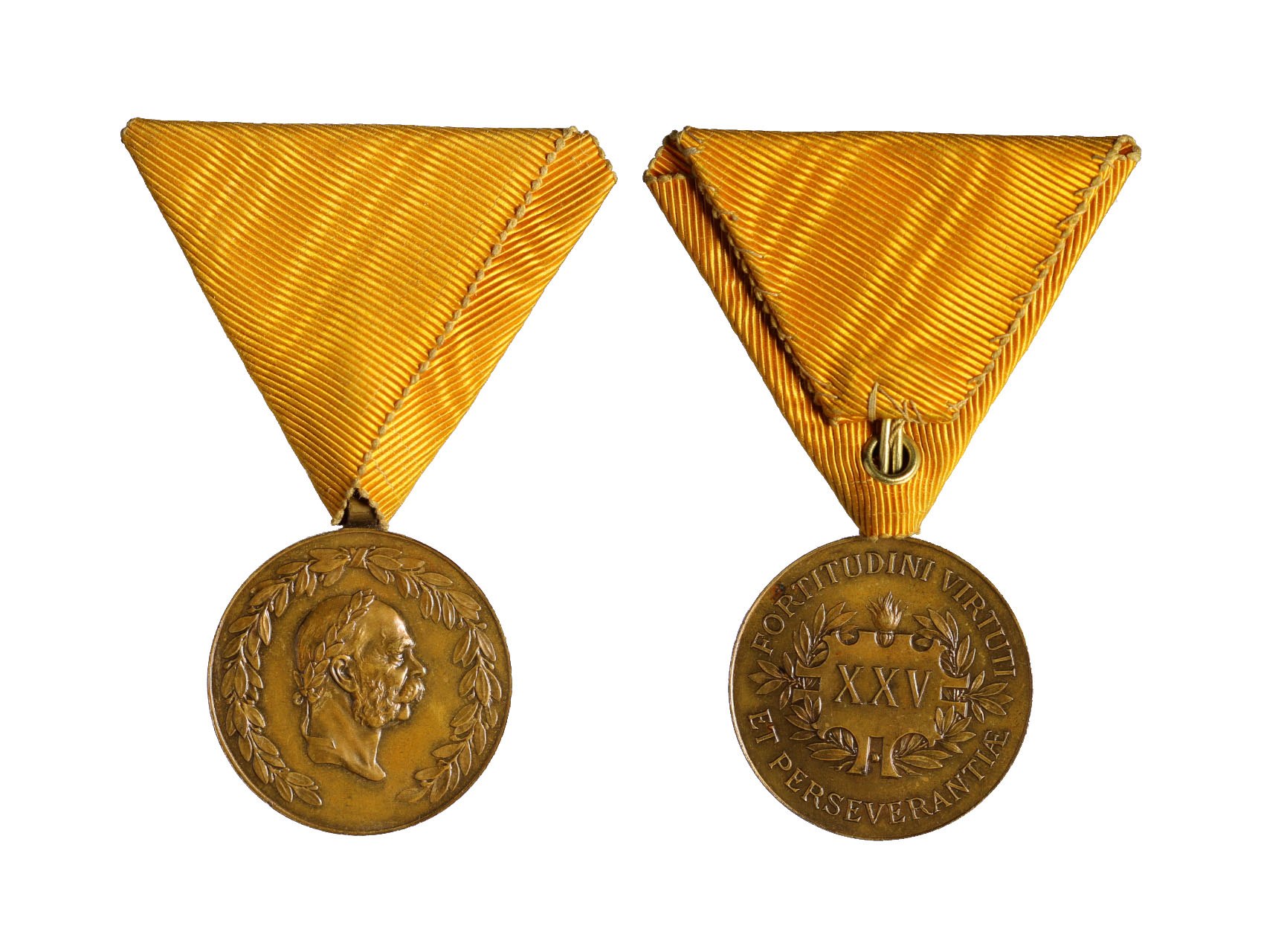 2703 Čestná medaile za 25 let záslužné činnosti hasičské a záchrané, původní stuha, Ma333 500