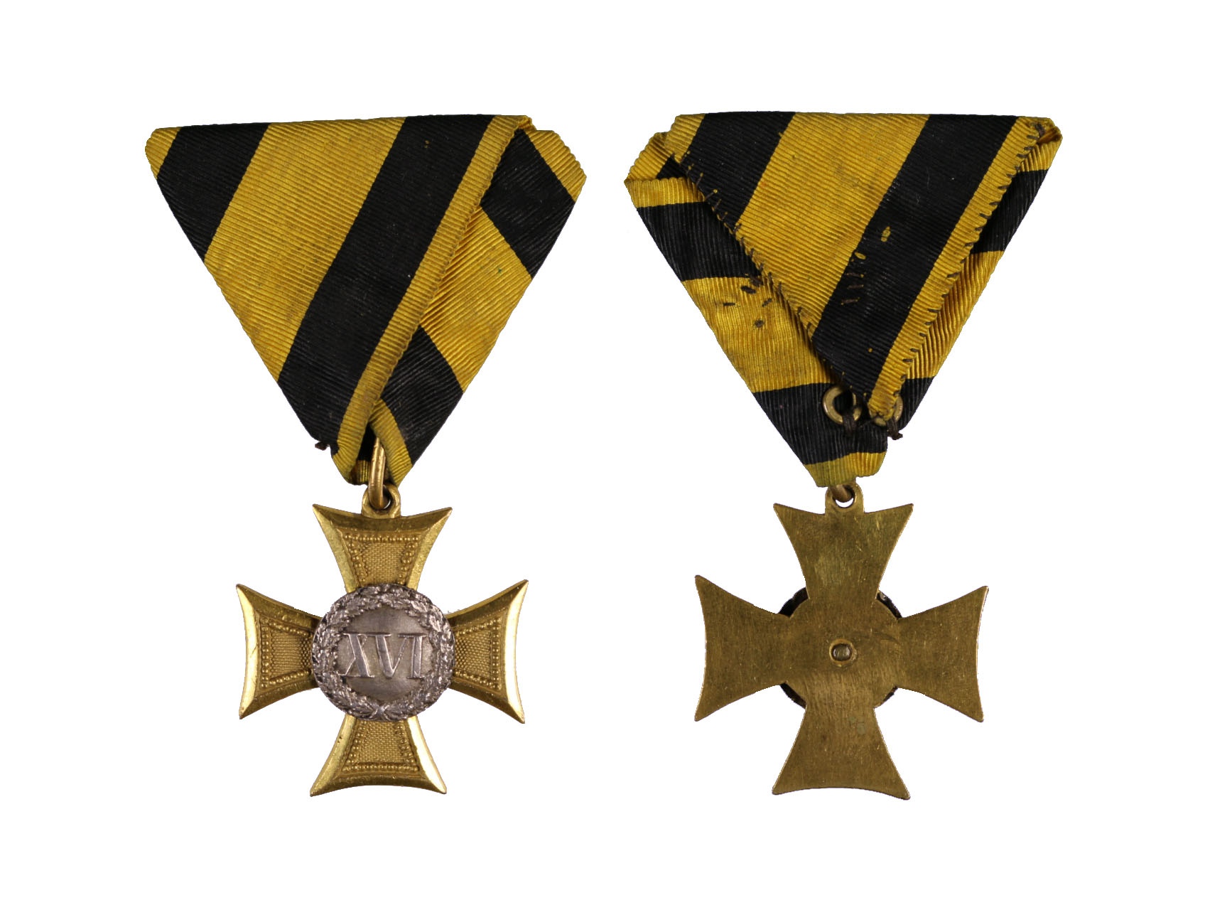 2707 Vojenský služební kříž II.tř. za 16 let služby, vydání z let 1849 - 1867, původní stuha, Ma373b 4000