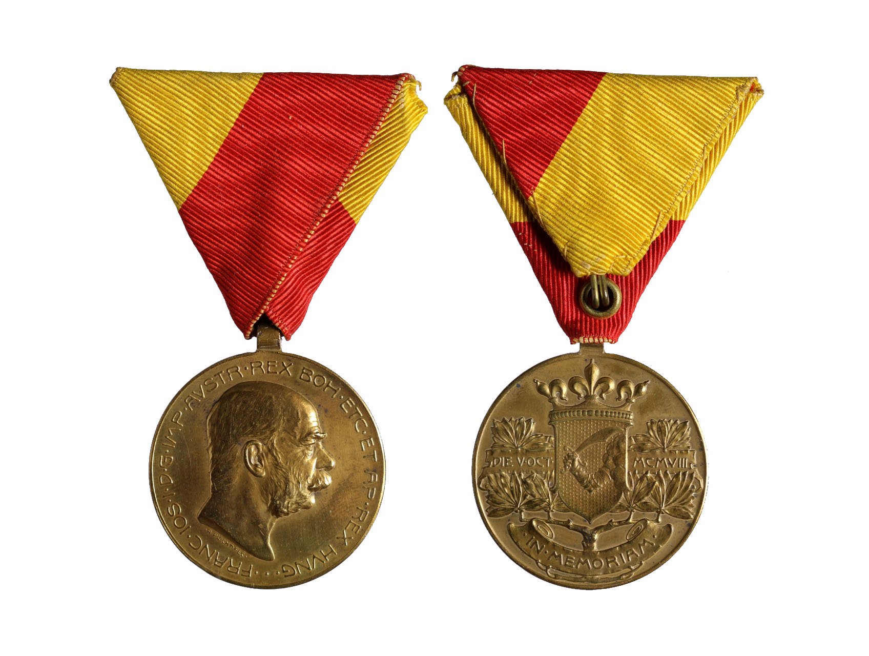 2704 Pamětní medaile pro pražské měšťanské ozbrojené sbory z roku 1866, původní stuha, Ma362 10000
