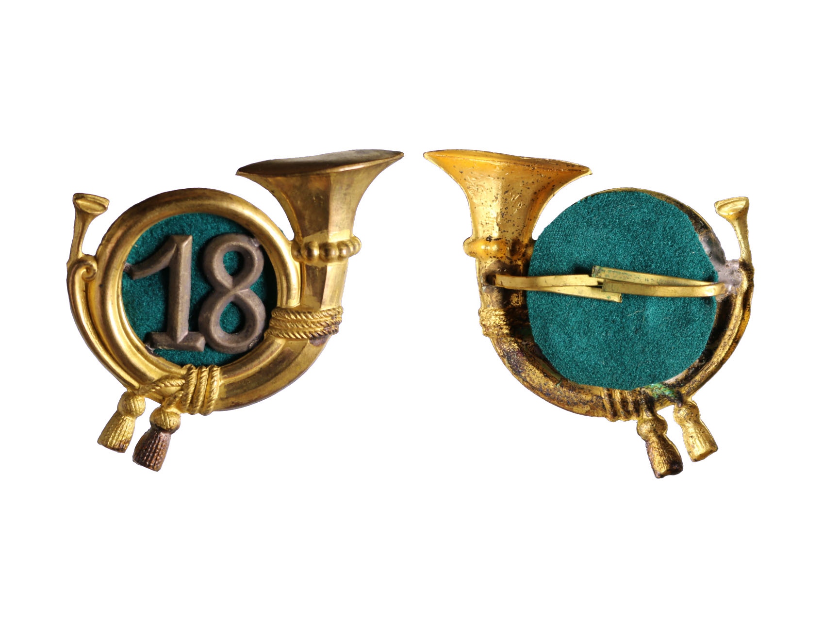 2716 Čepicový odznak 18. praporu polních myslivců, 50x50 mm, bronzový pozlacený plech 500