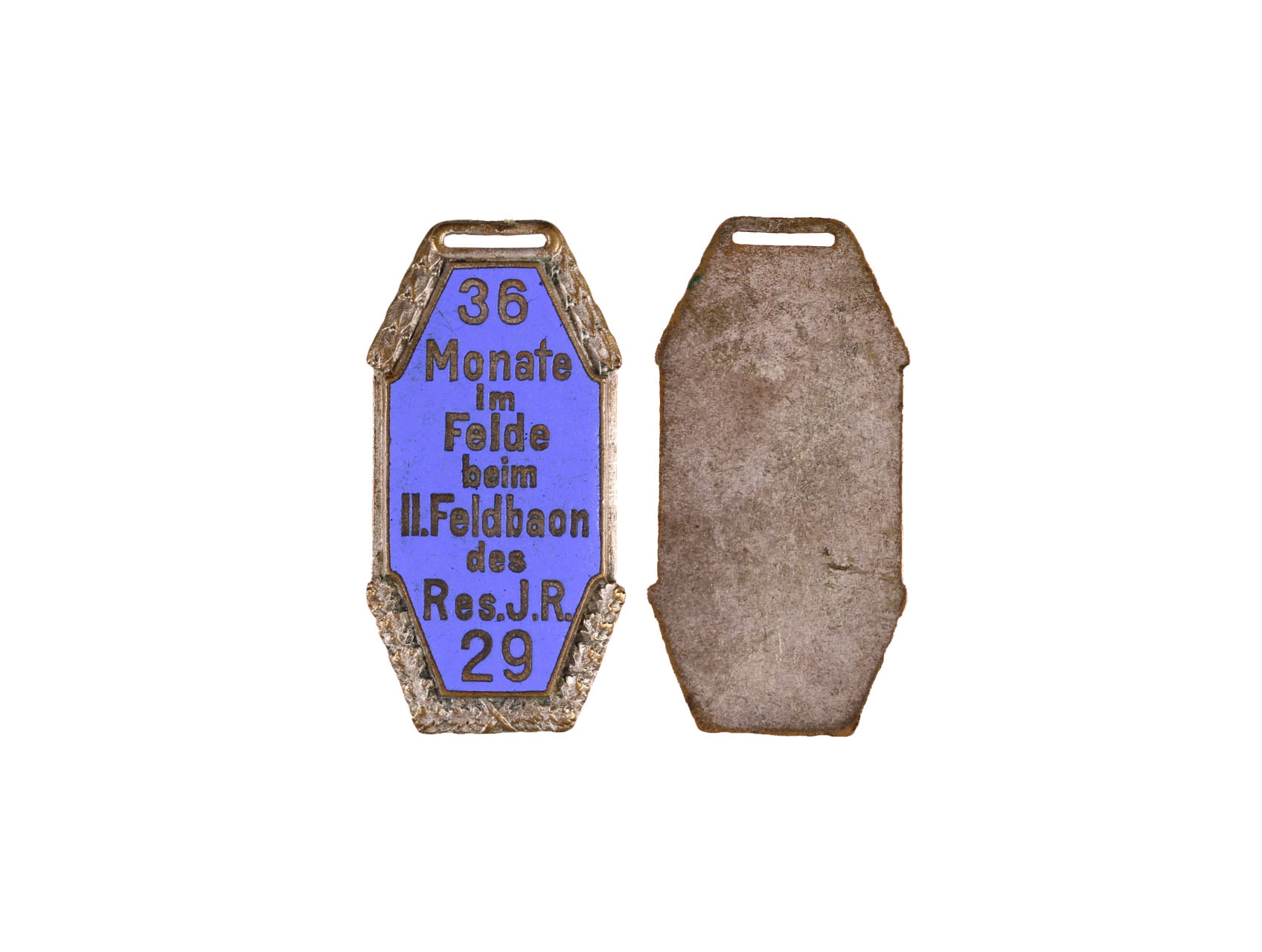 2717 Pamětní odznak 36 měsíců v poli II. polní prapor J.R.29, postříbřený bronz, smalt 800