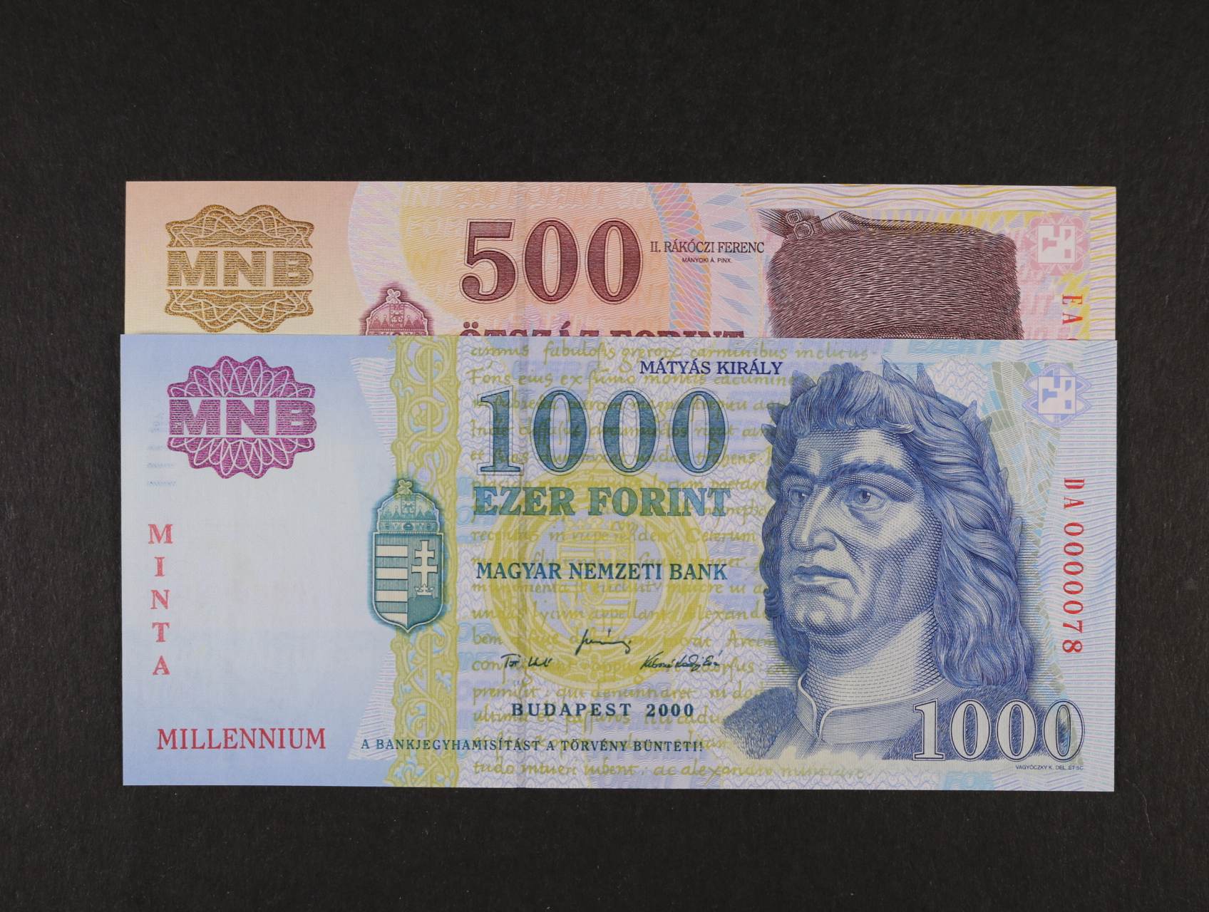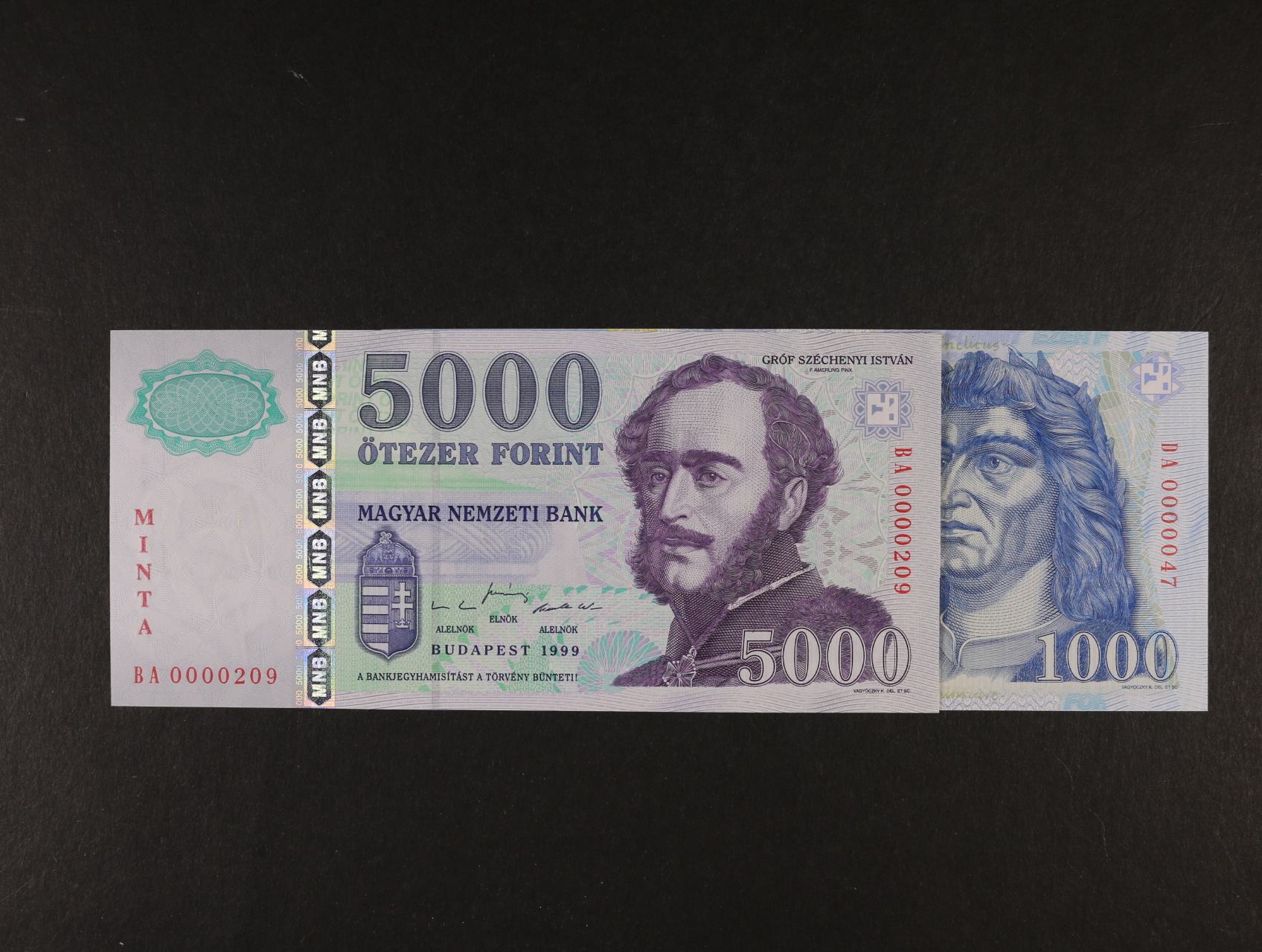 2293 1000 (0000047), 5000 (0000209) Forint 1999 vše s přetiskem MINTA, Pi. 180s, 182s 2000