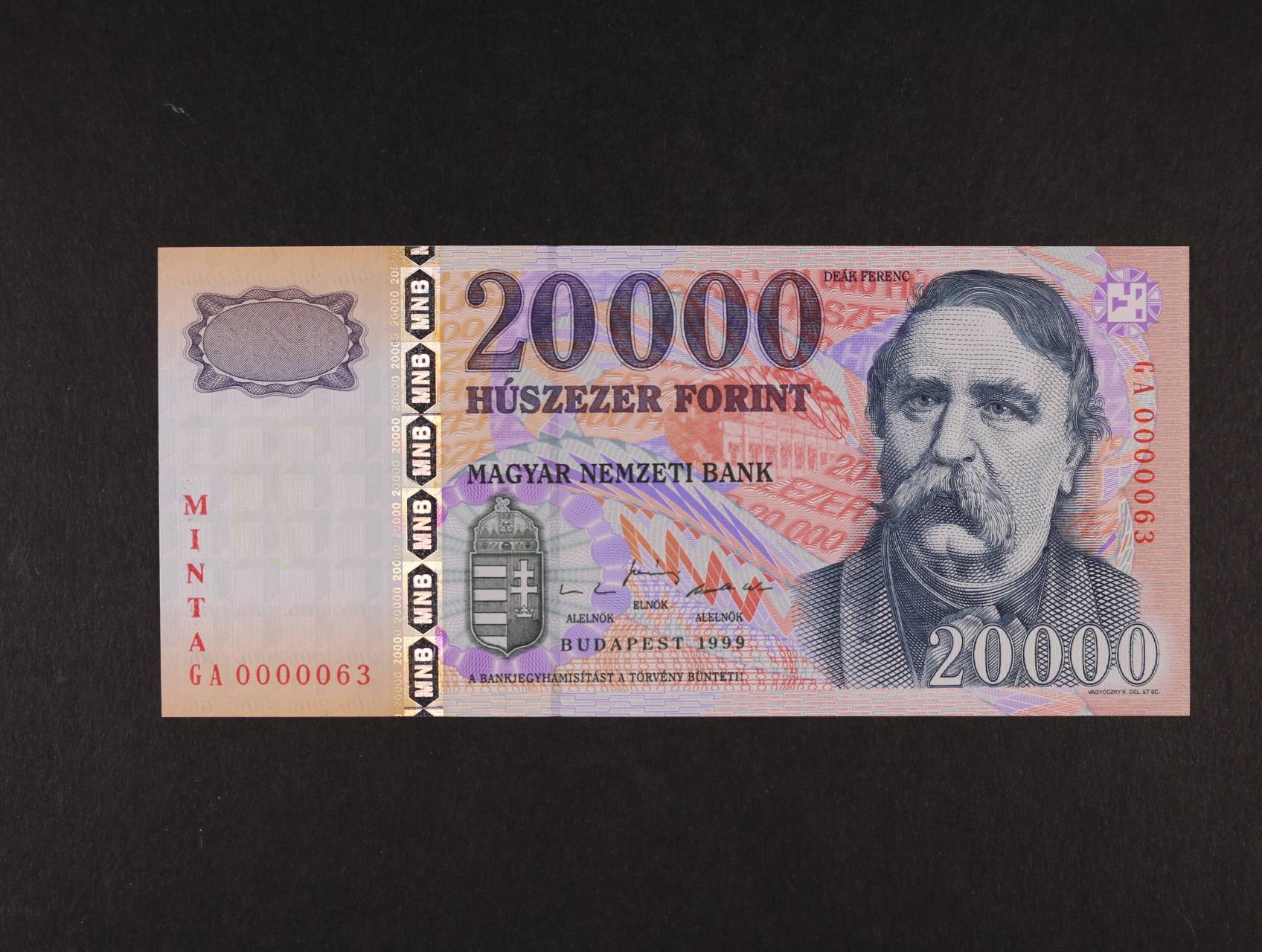 2297 20.000 Forint 1999 série GA 0000063 s přetiskem MINTA, Pi. 184s 3000