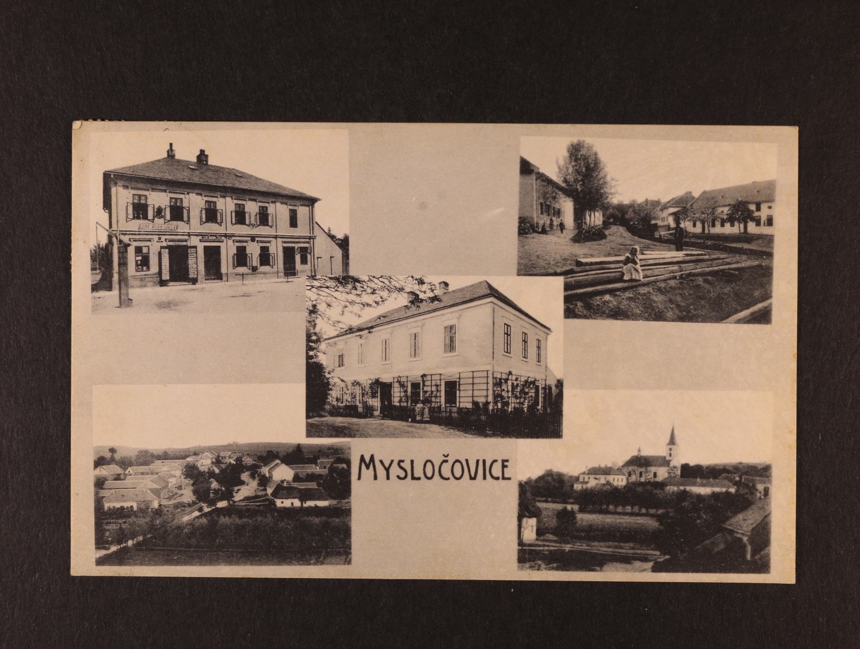 Mysločovice, okr. Zlín - jednobar. pětiokénková pohlednice, použitá 1914