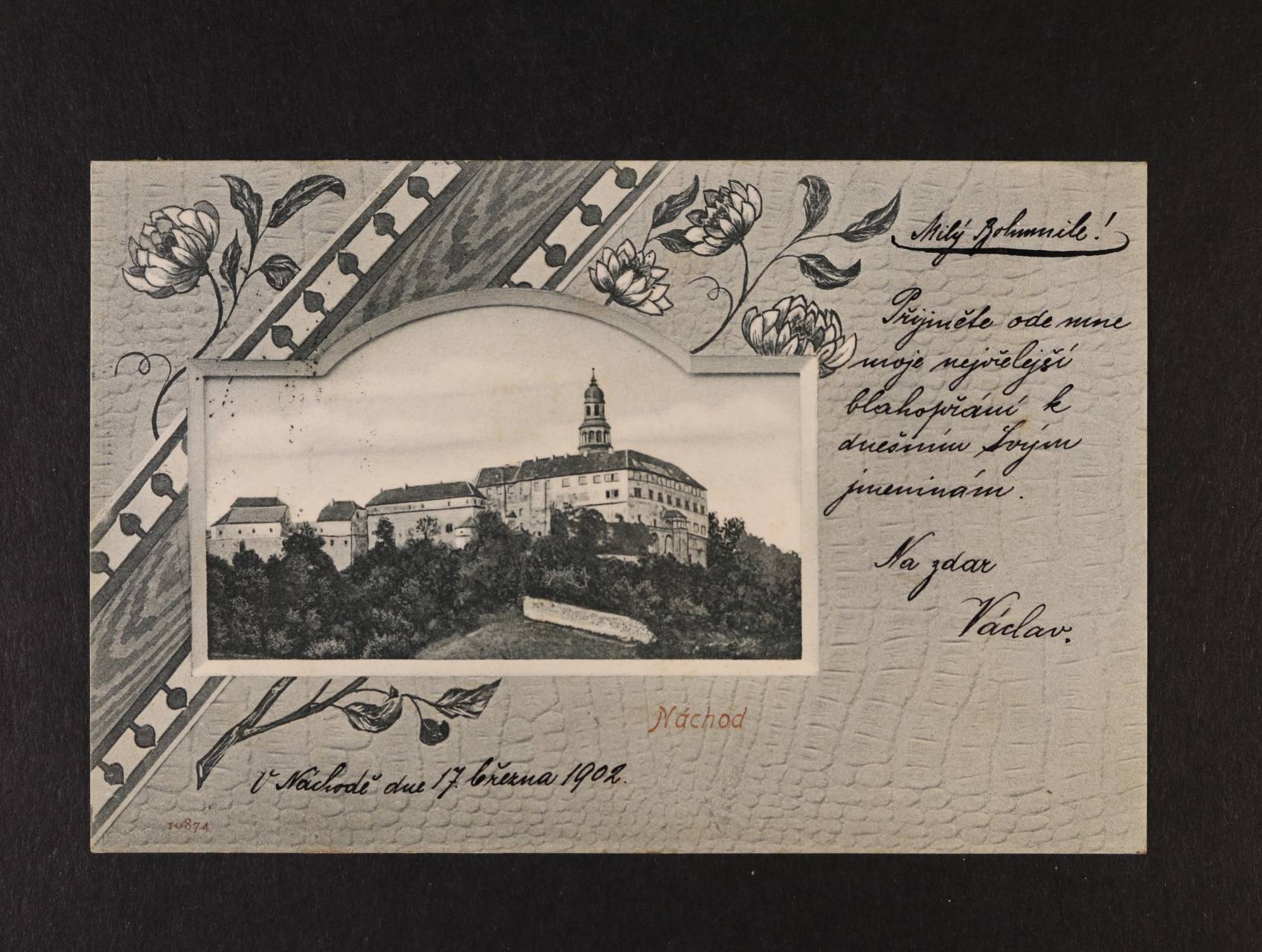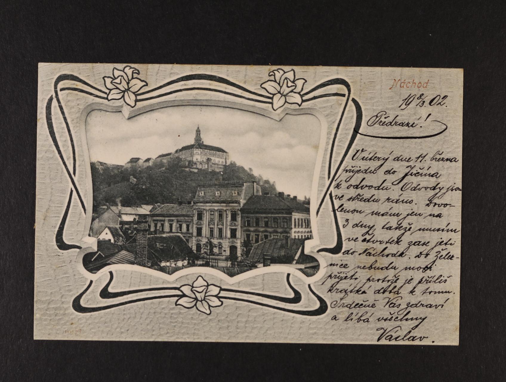 Náchod - jednobar. koláž, dl. adresa, použitá 1902