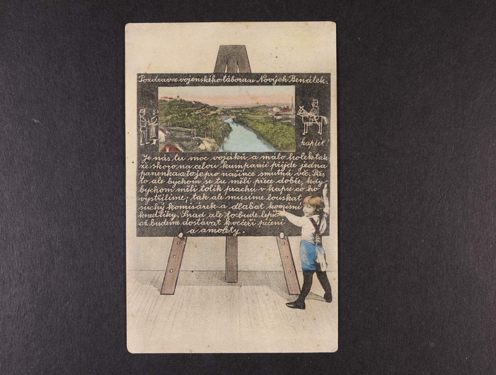 Nové Benátky - bar. koláž školní tabule, použitá, dobrá kvalita