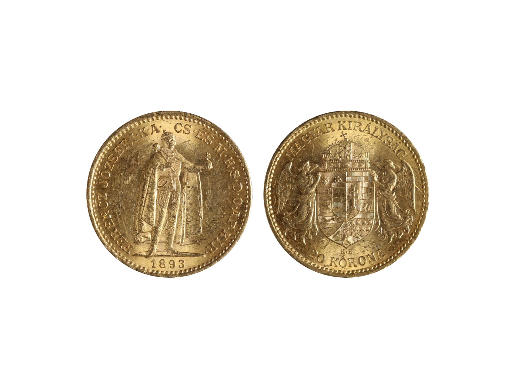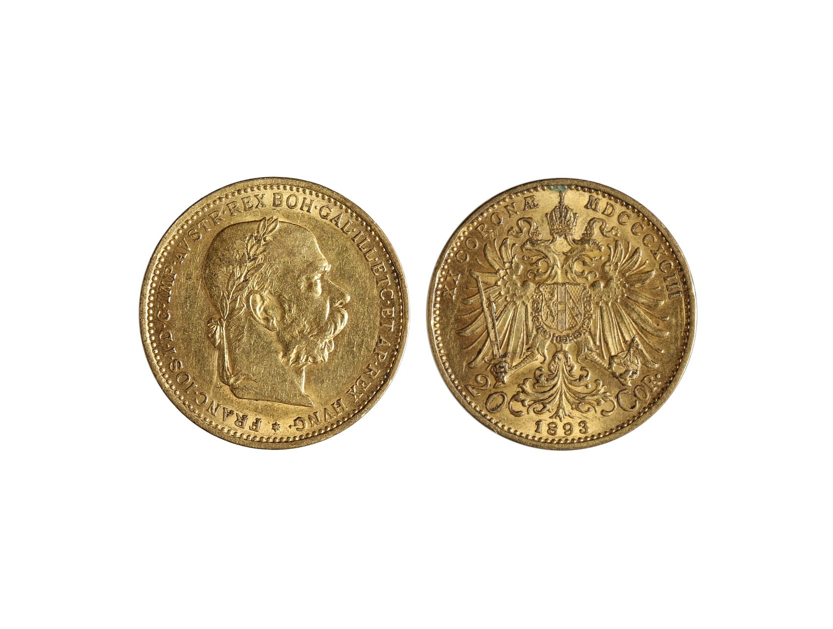 František Josef I. 1848-1916 - 20 Koruna 1893 KB, 6.775 g, 900/1000, N138