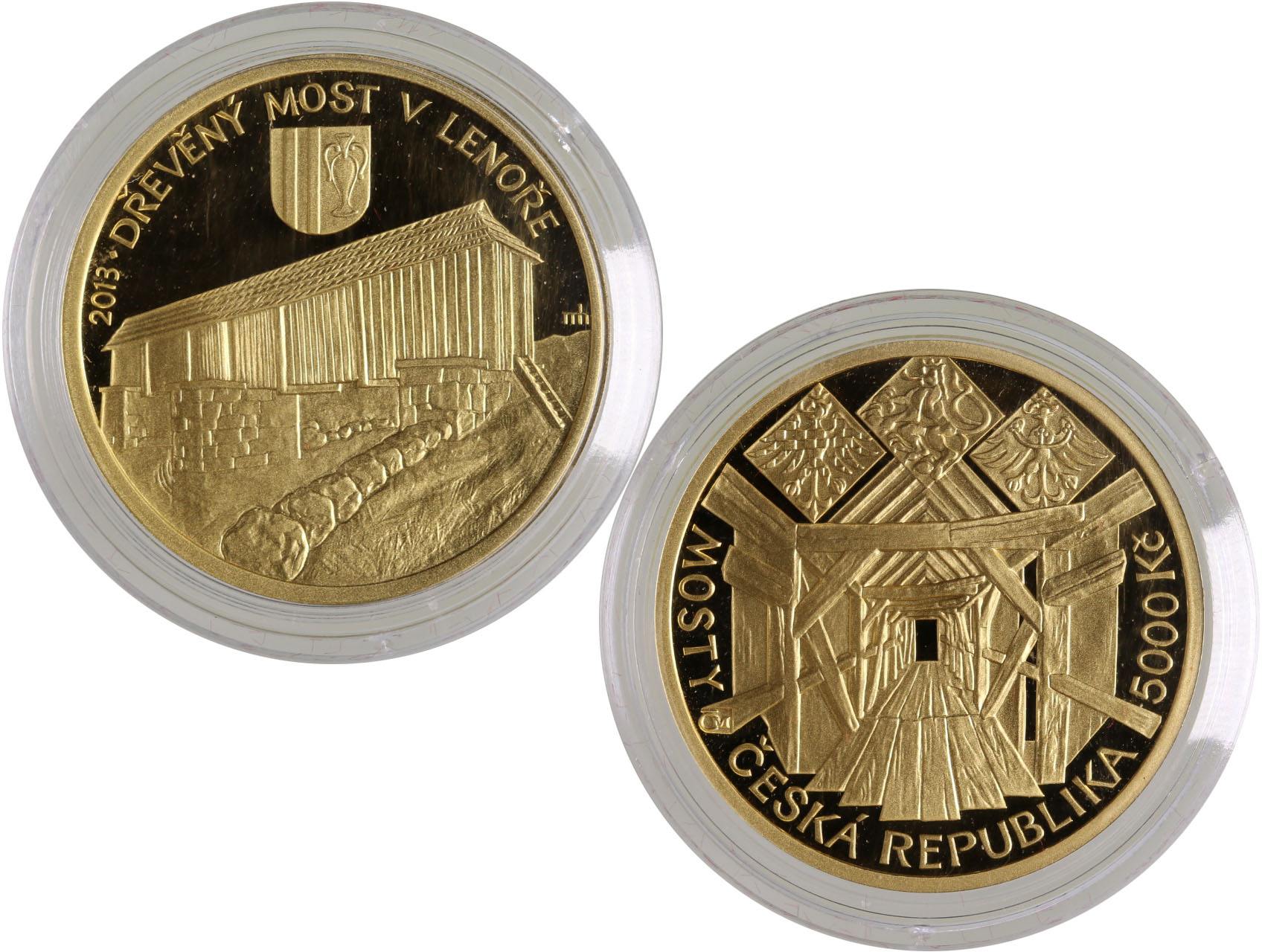 Česká Republika 1993 - 5000 Kč 2013 dřevěný most v Lenoře, náklad 11300 ks, 15,55g, etue, certifikát, kvalita PROOF