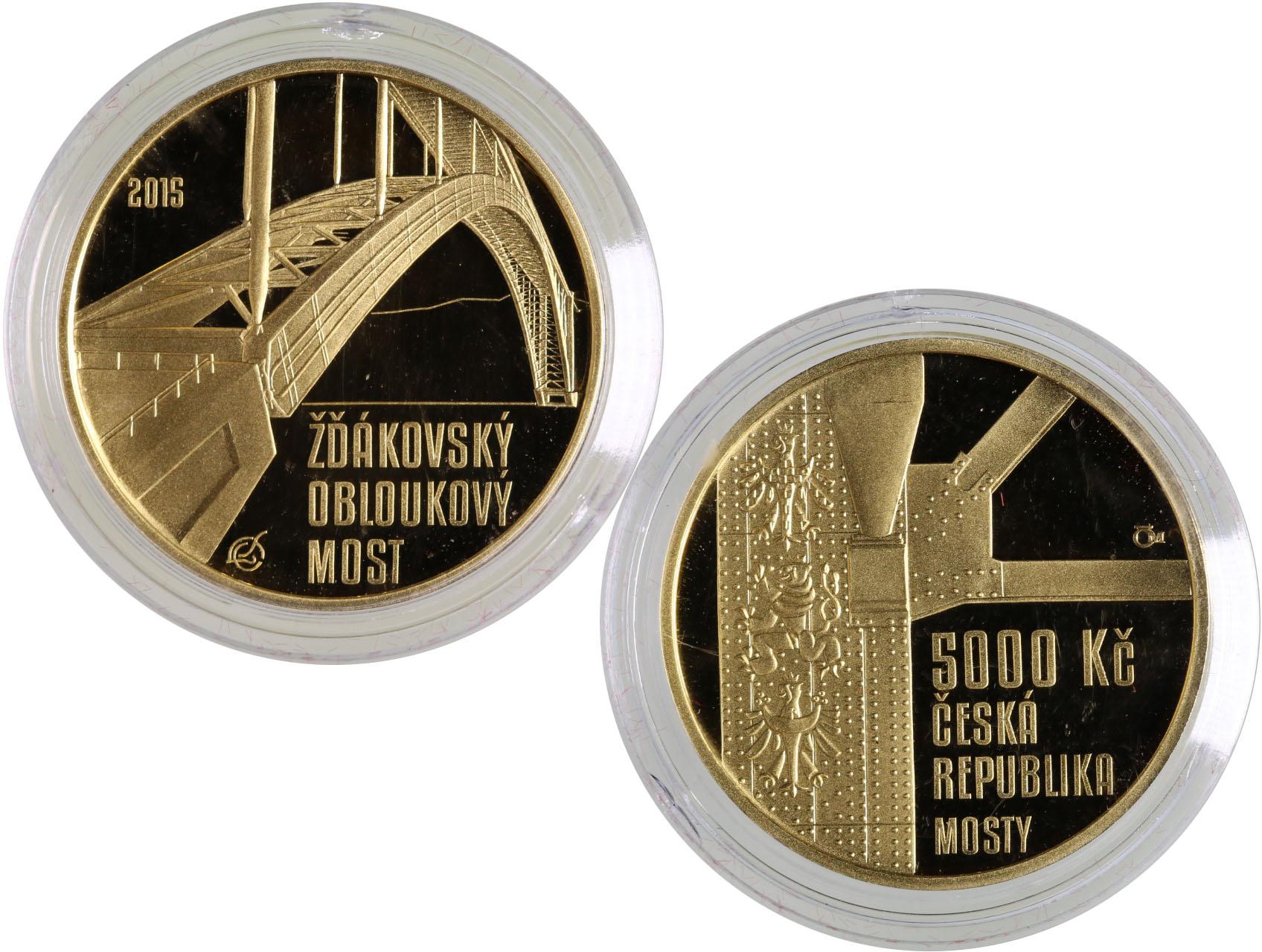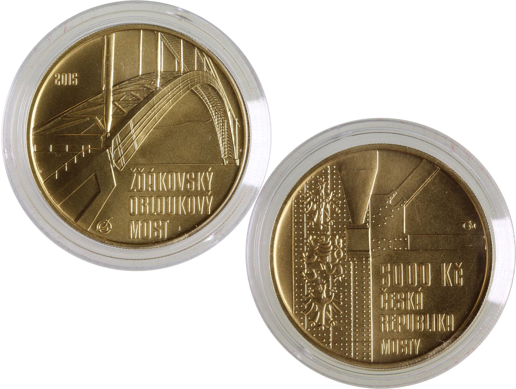 Česká Republika 1993 - 5000 Kč 2015 Žďákovský obloukový most, náklad 2000 ks, 15,55g, etue, certifikát, kvalita b.j.