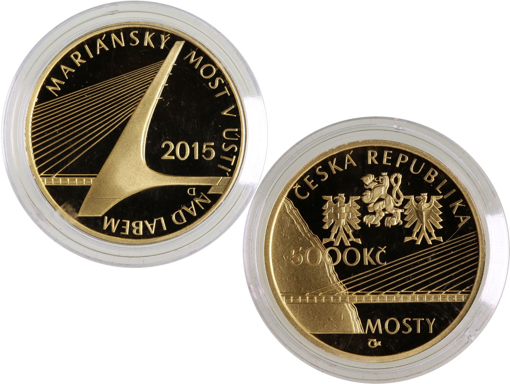 Česká Republika 1993 - 5000 Kč 2015 Mariánský most v Ústí nad Labem, náklad 2000 ks, 15,55g, etue, certifikát, kvalita PROOF