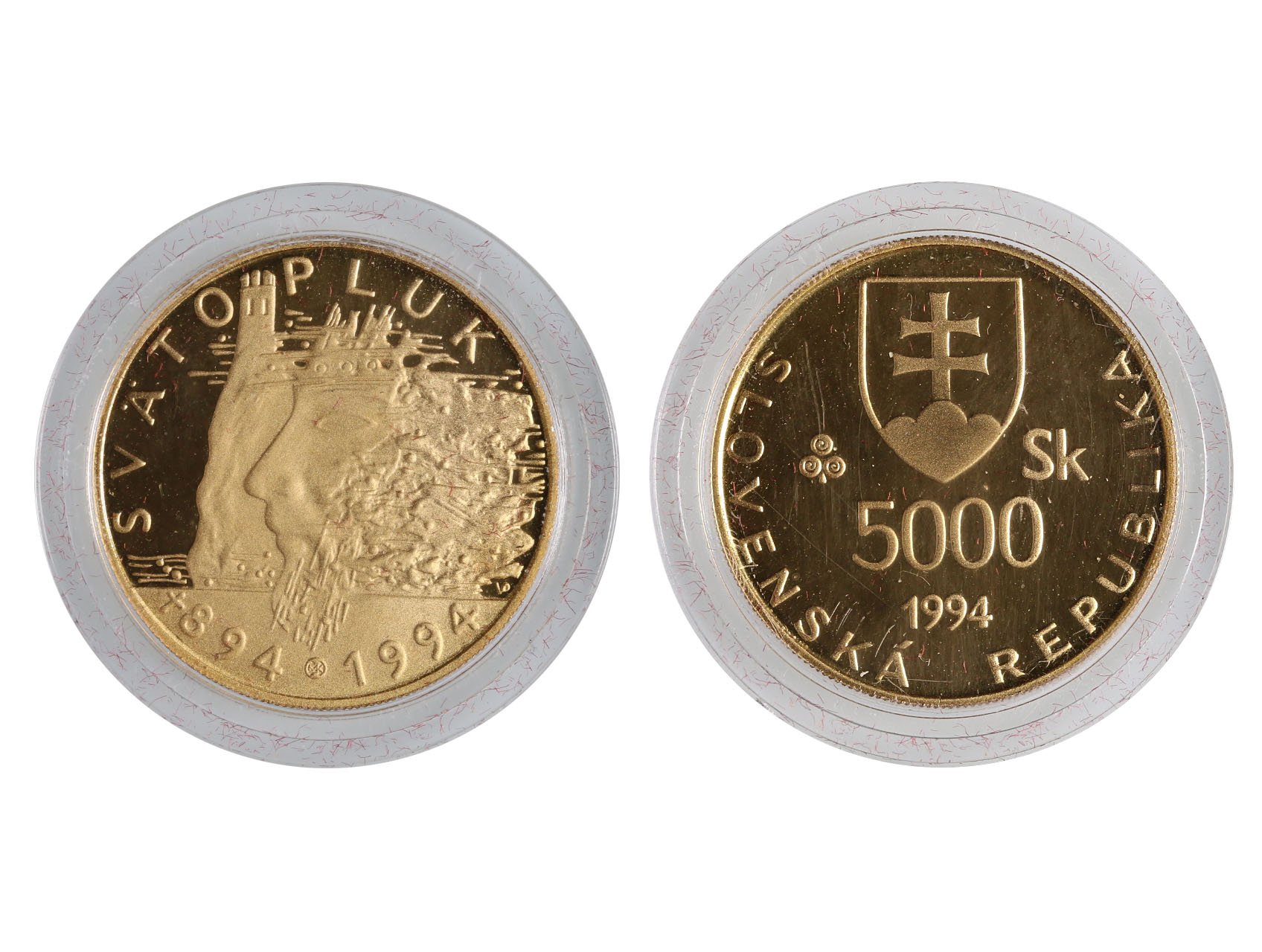 Slovenská Republika - 5000 Sk 1994 1100.výročí velkomoravského panovníka Svatopluka, Au 0,900, 7g, náklad 5000 ks, originální etue a certifikát, kvalita proof