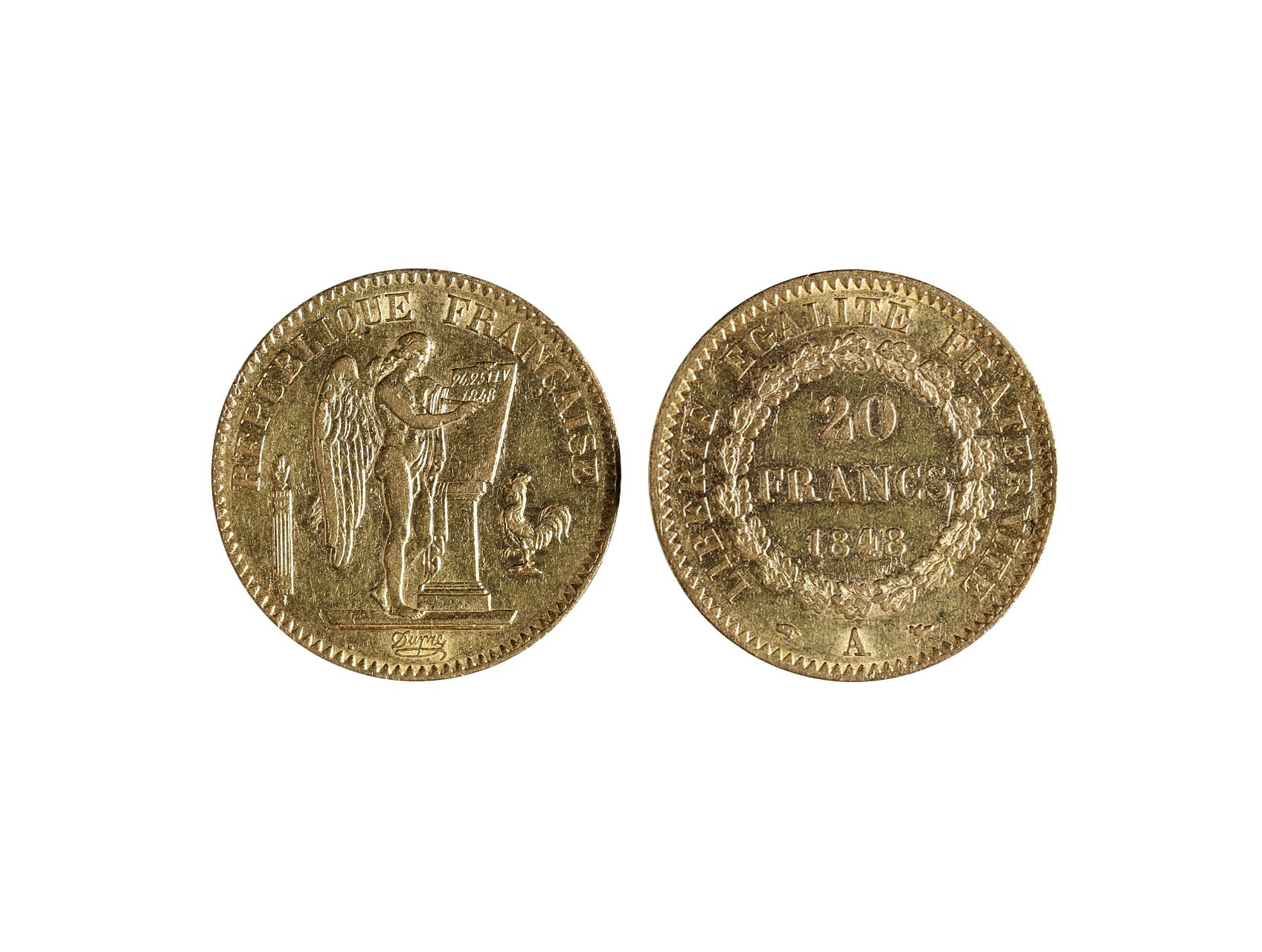 Francie - 20 Frank 1850 A republika, 6,451g, Au 0,900