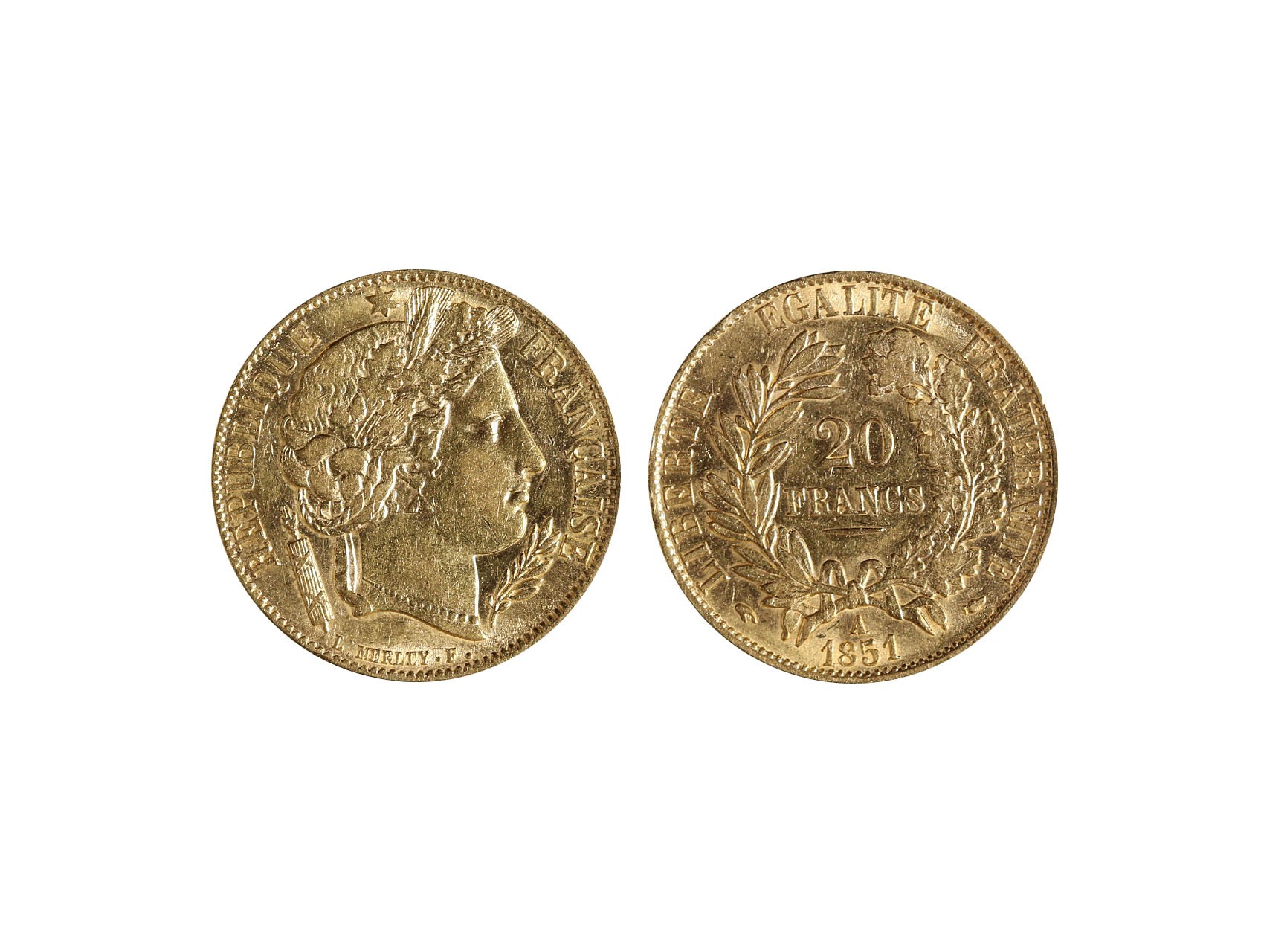 Francie - 20 Frank 1851 A republika, 6,451g, Au 0,900