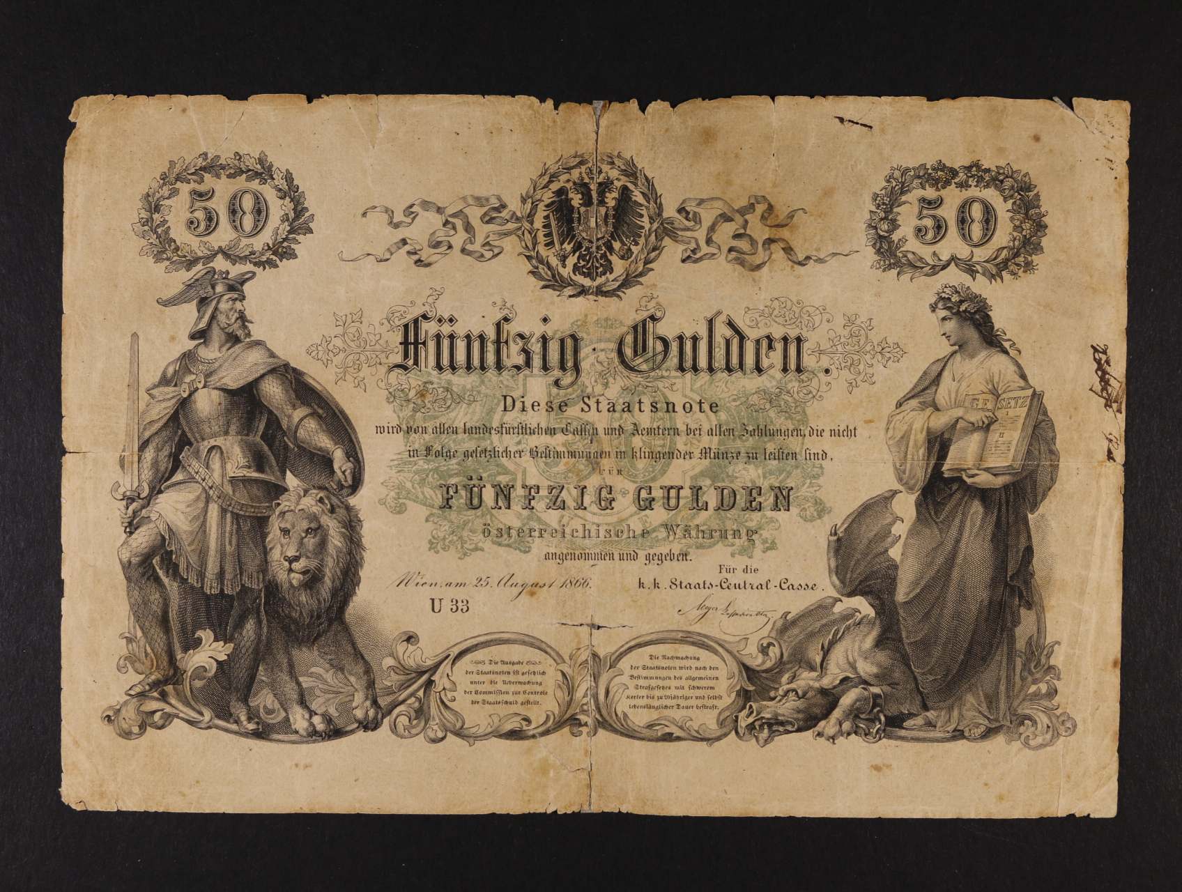 1685 50 Gulden 25.8.1866 série U 33, Ri. 140 15000