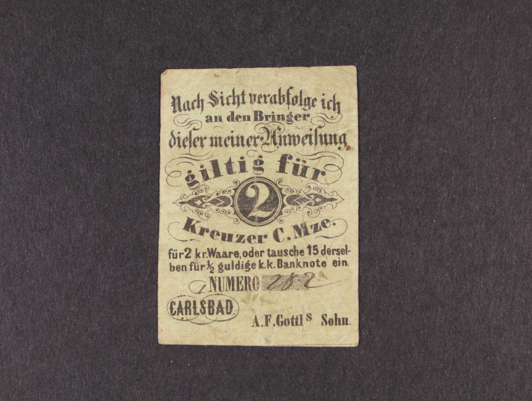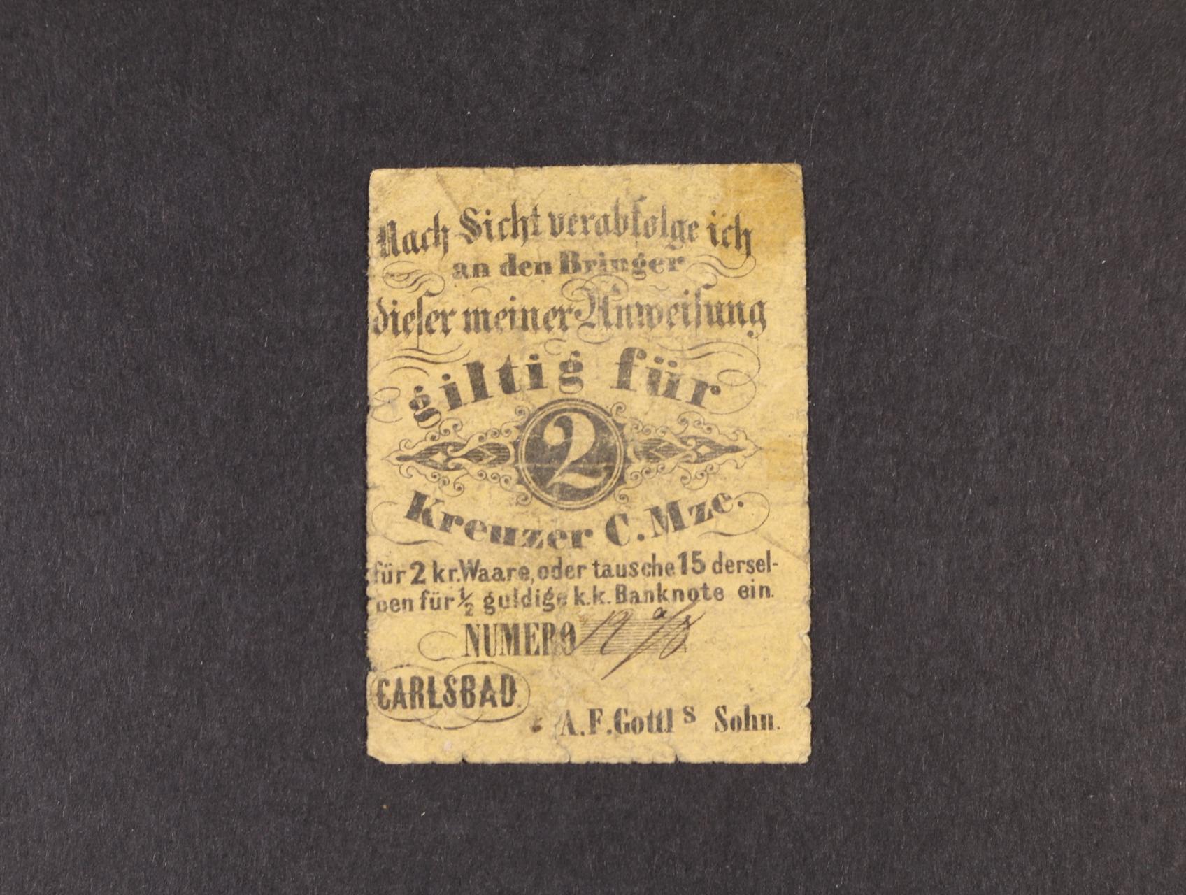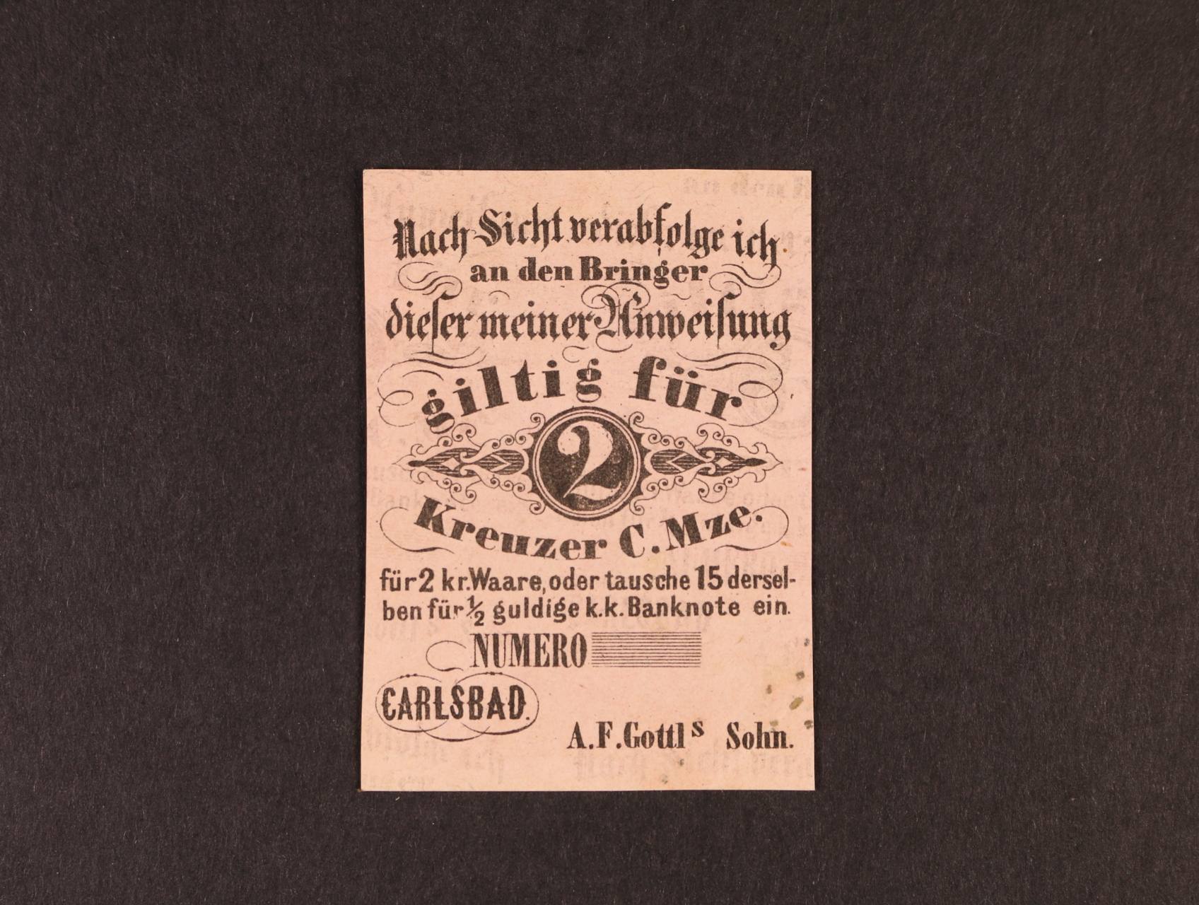 Carlsbad (Karlovy Vary), 2 kr. C.M. b.d. A.F.Gottls Sohn, červený, formulář, V.R. 185.16.02.c.F