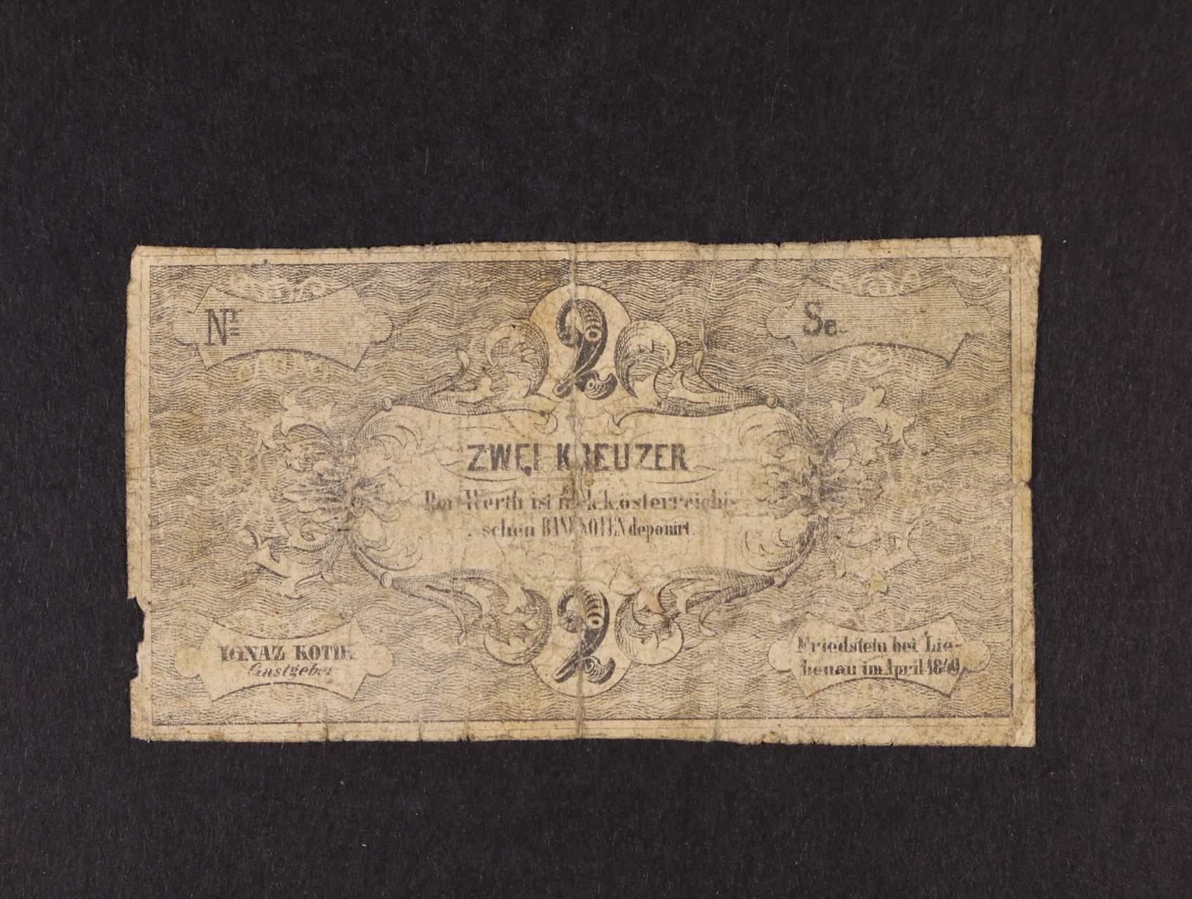Friedstein bei Liebenau (Frýdštejn), 2 kr. C.M. IV.1849, V.R. 335.02.02.O, na R raz. a podpis