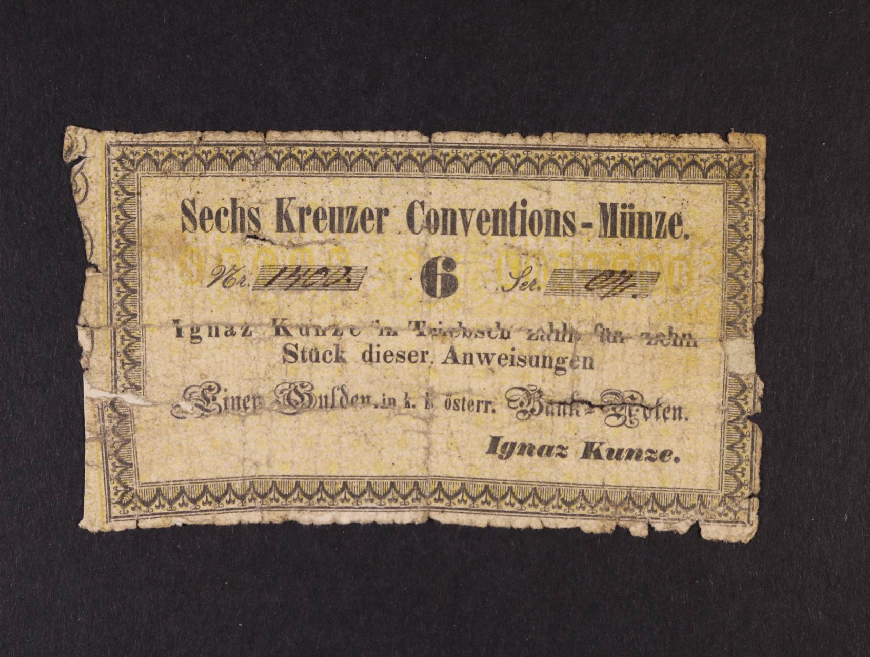 Triebsch (Třebušín), 6 kr. C.M. b.d. Ignatz Kunze, V.R. 1380.02.02.O, podlepená
