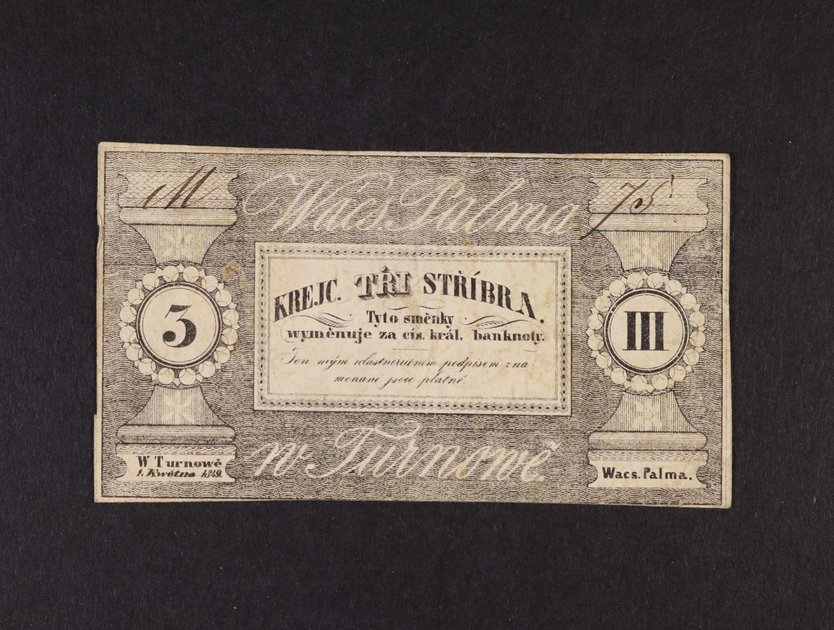 Turnau (Turnow), 3 kr. stř. 1.5.1849 Wács. Palma, V.R. 1405.04.05.a.O, na R podpis