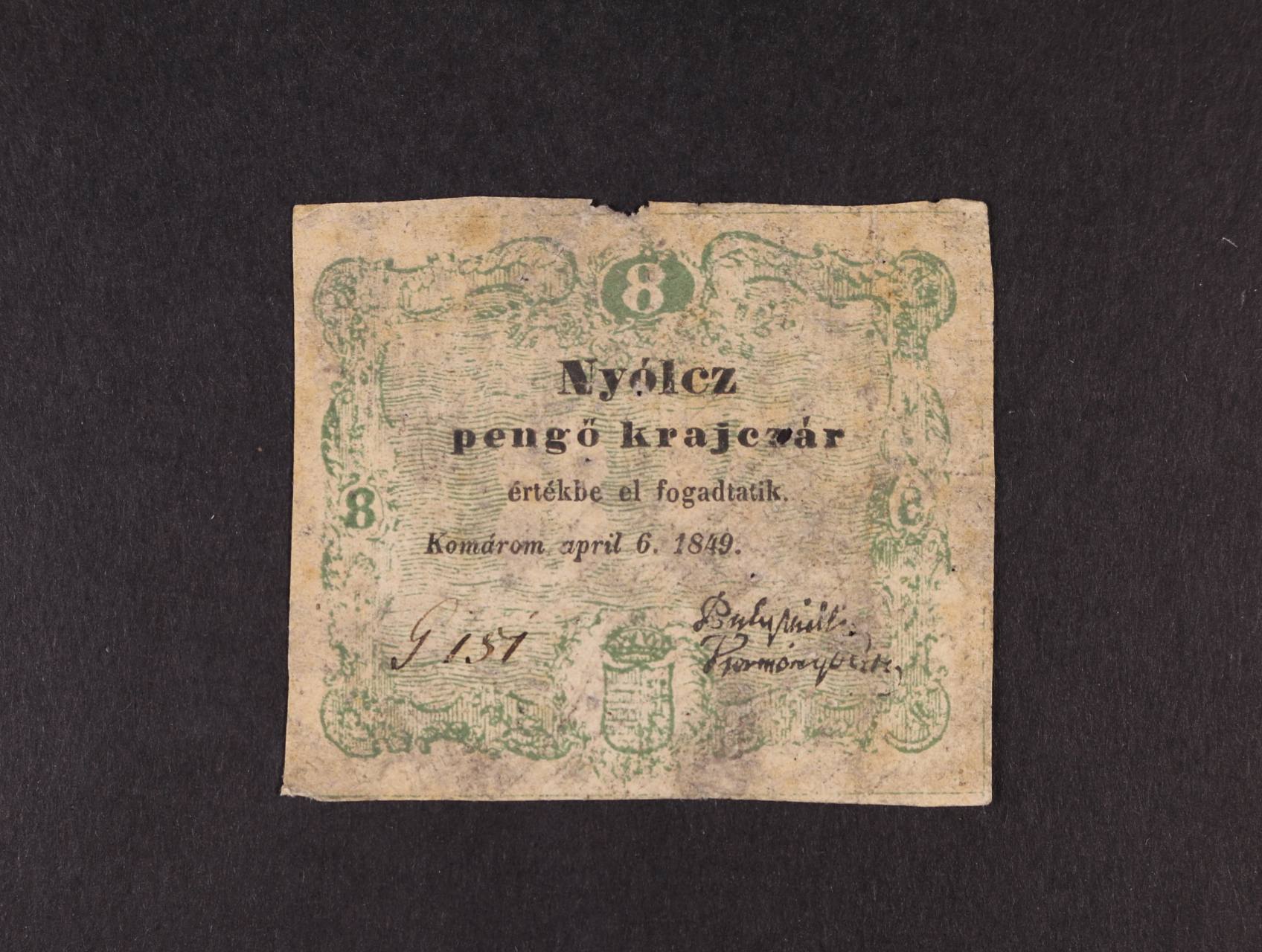 Komárom (Komárno) 8 pengö kr. 6.4.1849, Ro. B17, Adam. KOM-2.1, vzácná