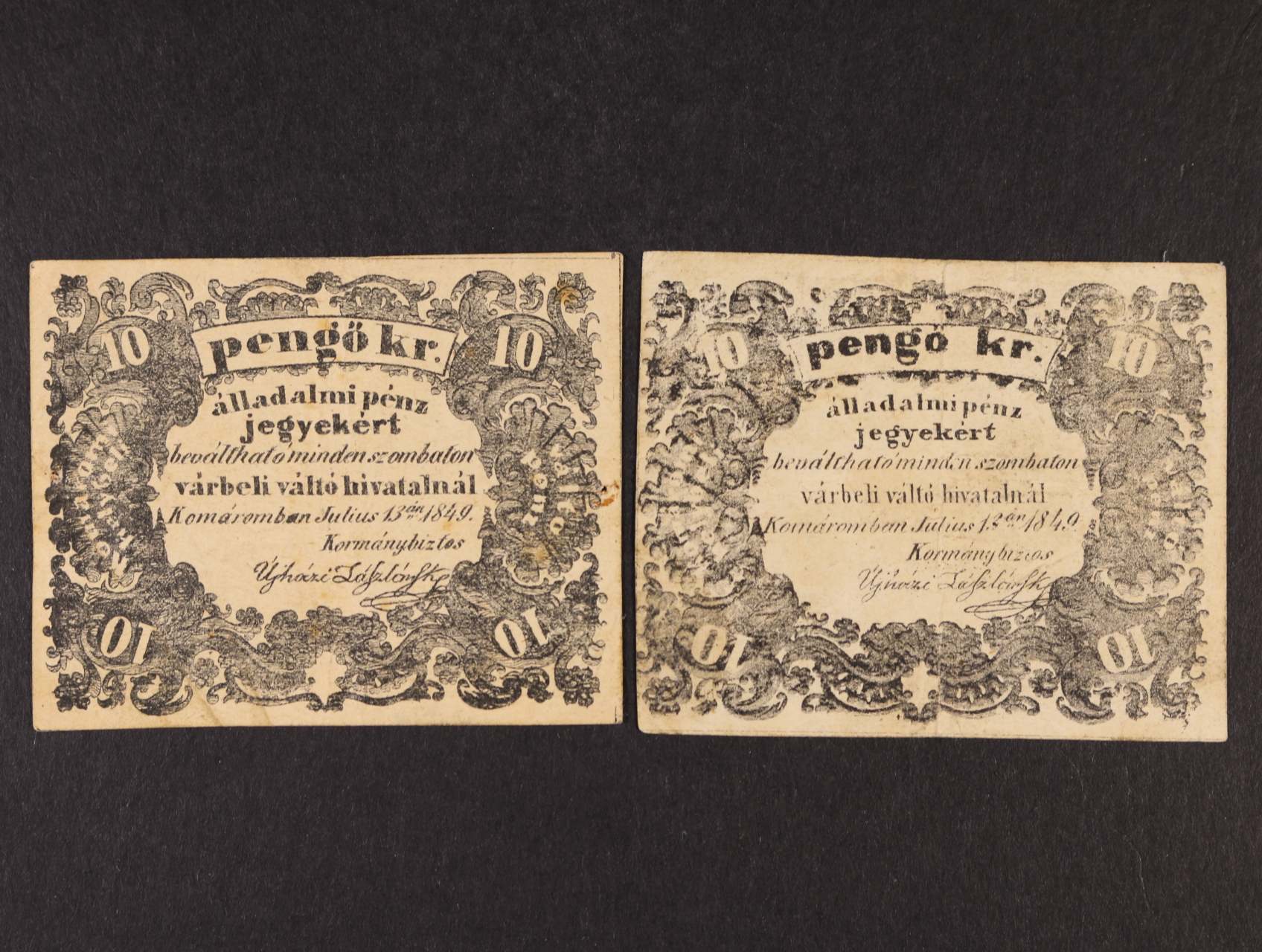 Komárom (Komárno) 10 pengö kr. 13.6.1849 2ks - varianty, Ro. B21a, B21b, Adam. KOM-3.2