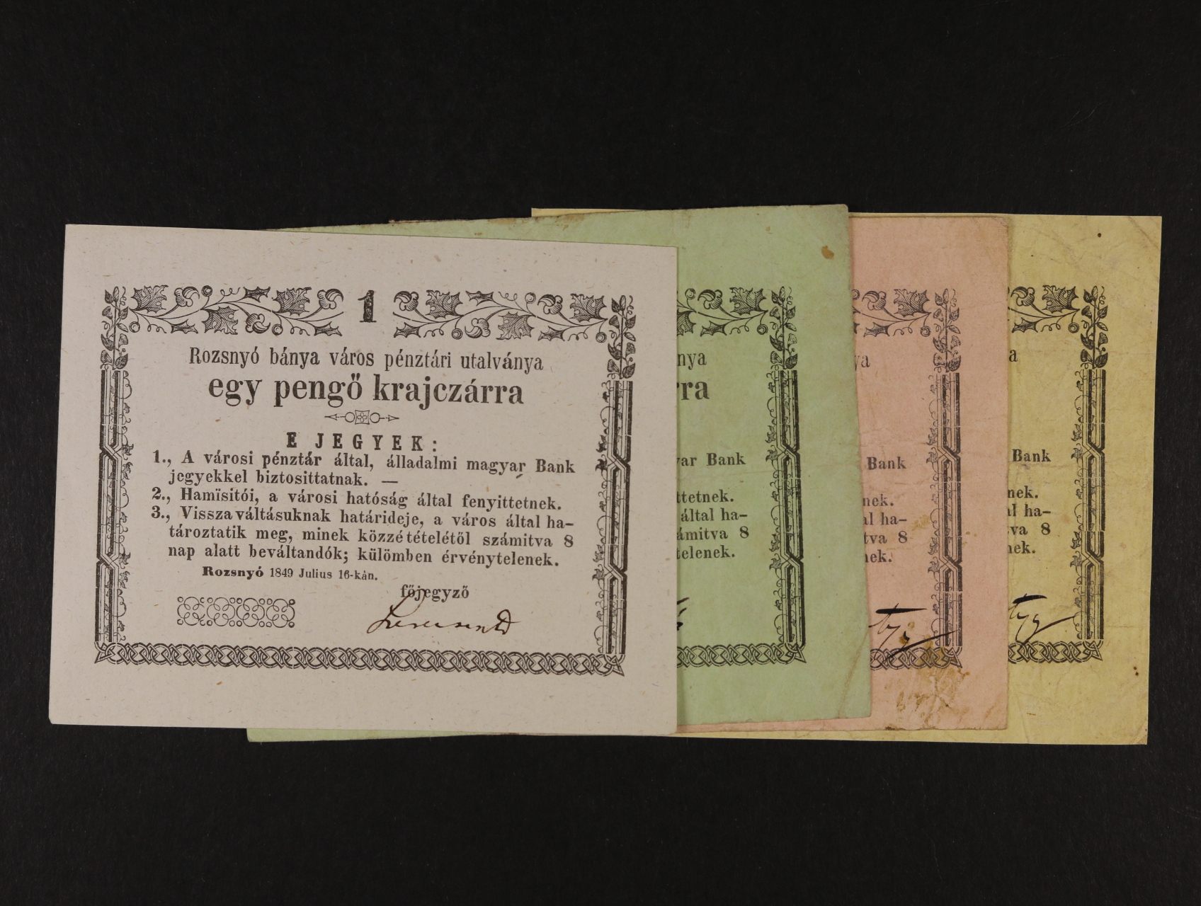 Rozsnyó (Rožňava), 1 kr., 3 kr., 6 kr., 10 kr. 16.7.1849, Adam. ROZ-1.1, 1.2, 1.3, 1.4