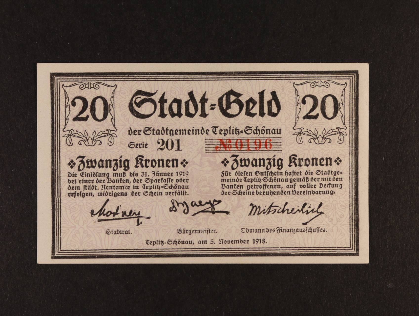 Teplitz - Schönau (Teplice - Šanov), 20 K 5.11.1918 město, D.H. 202.3.1b