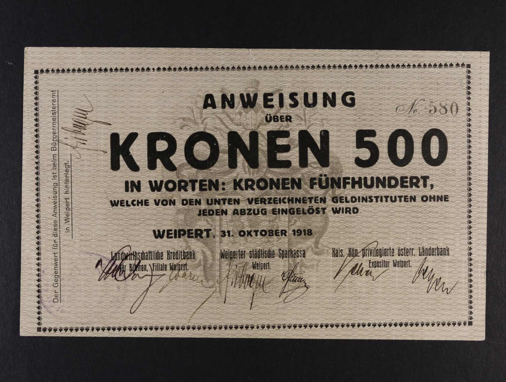 Weipert (Vejprty), 500 K 30.10.1918 město, D.H. 233.4