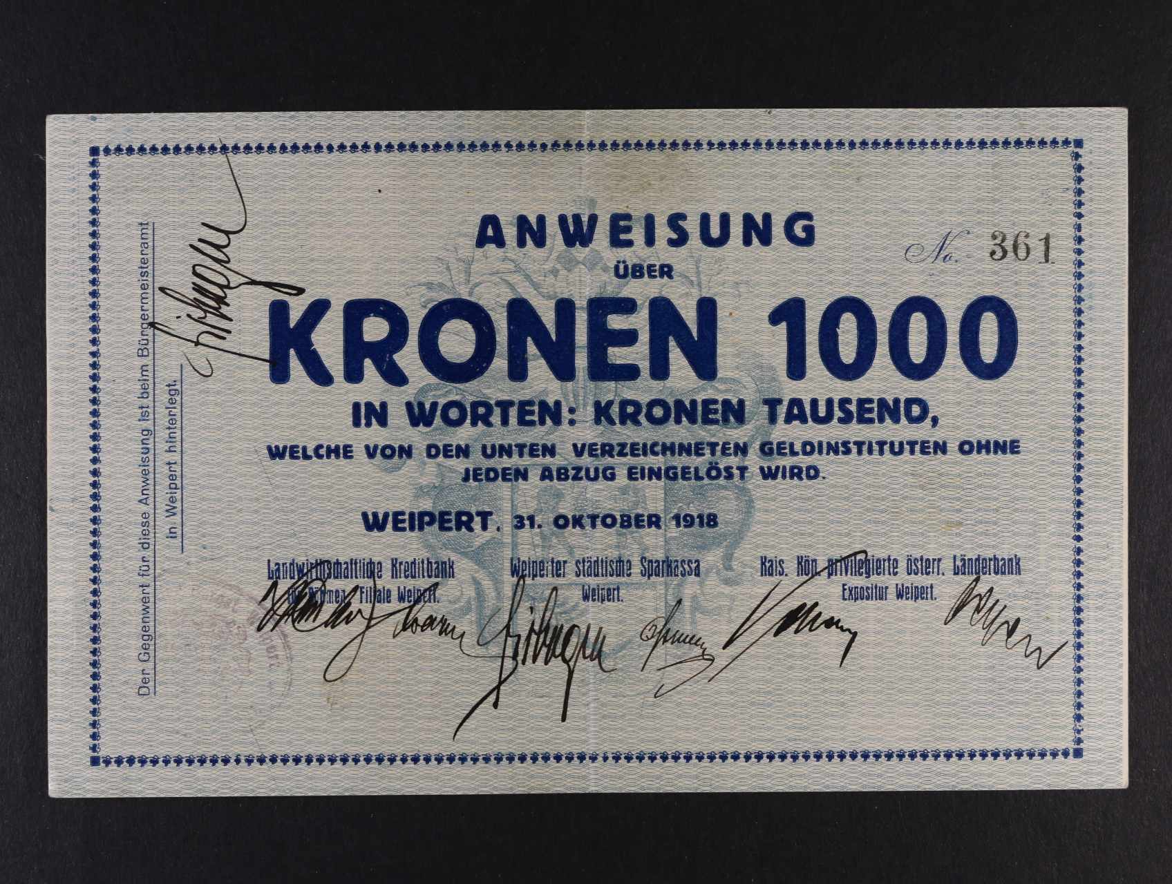Weipert (Vejprty), 1000 K 30.10.1918 město, D.H. 233.5a