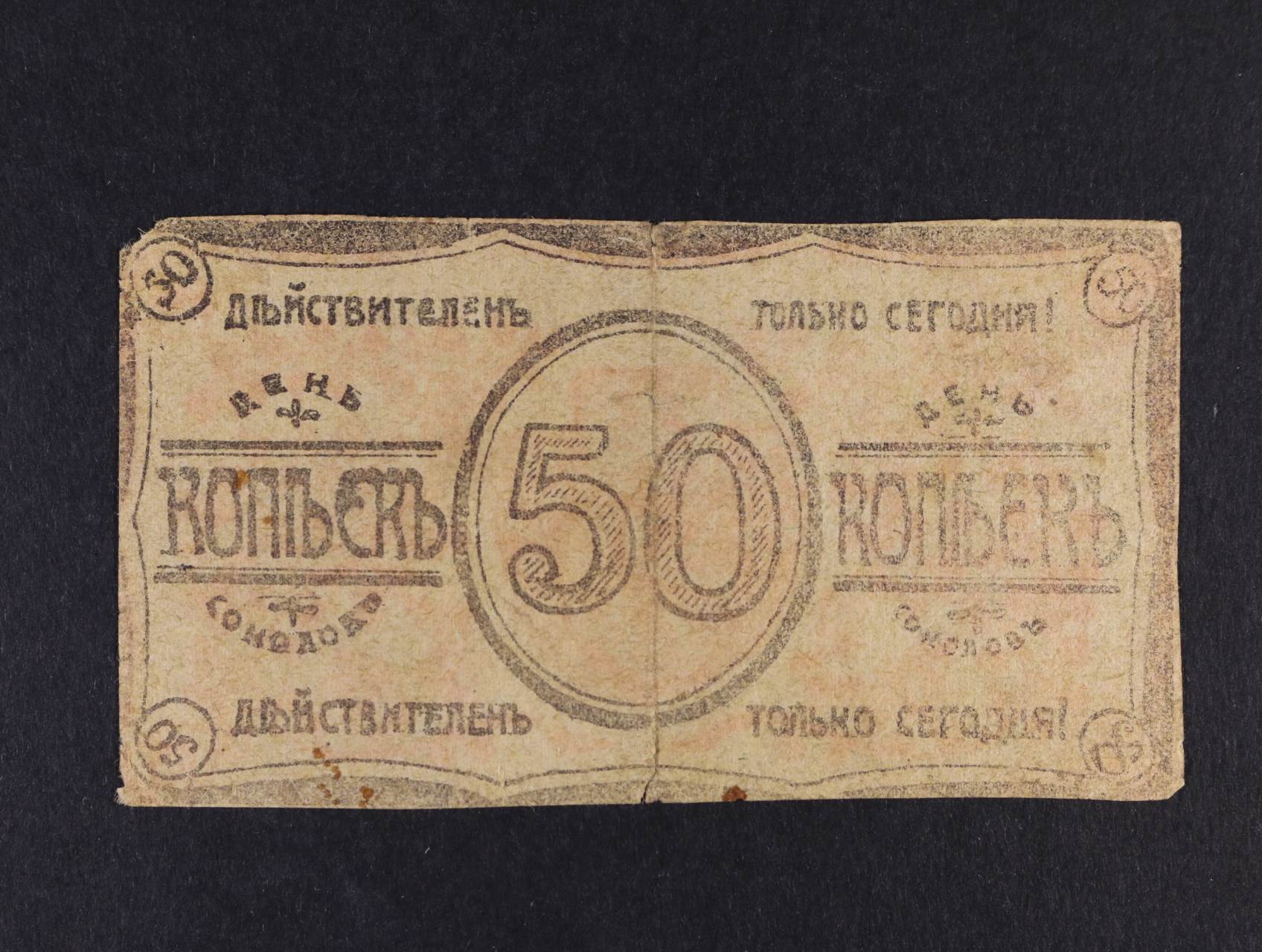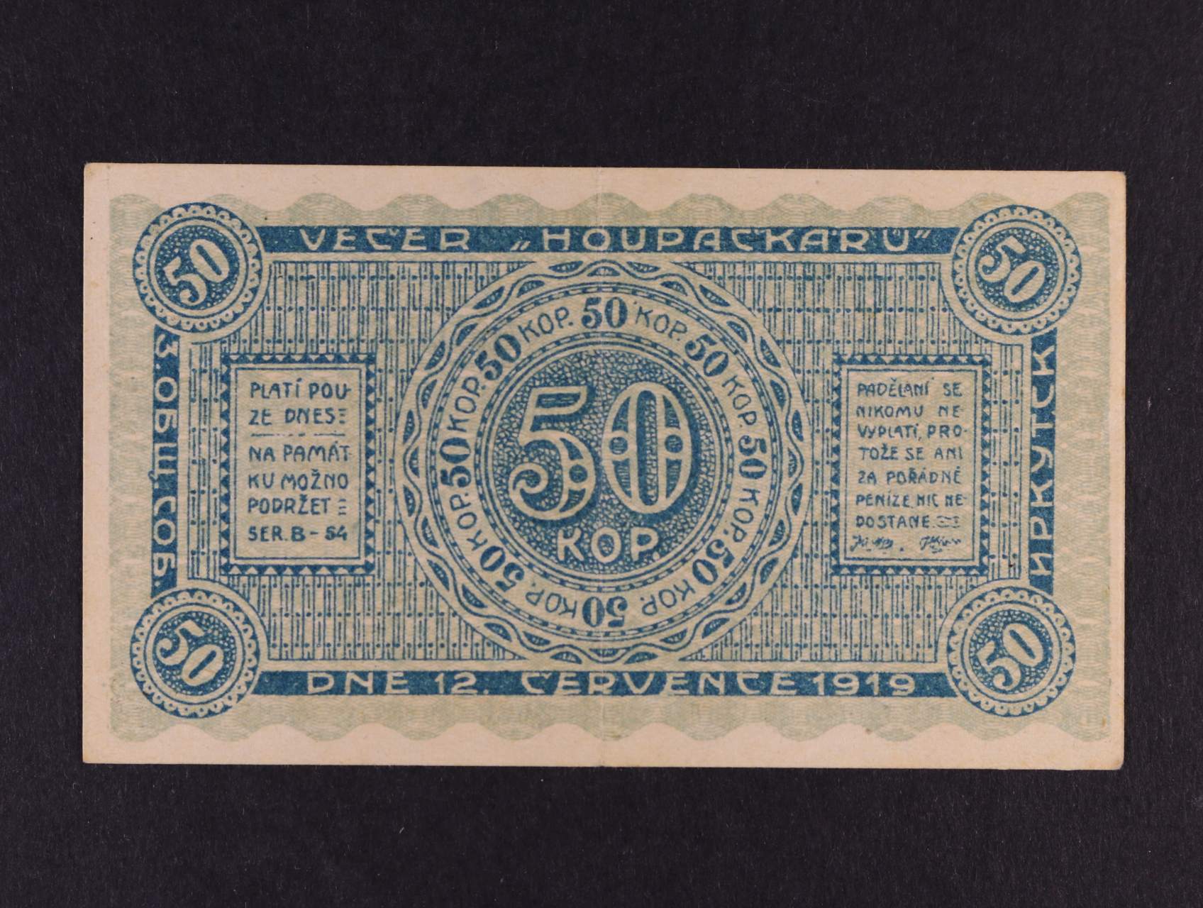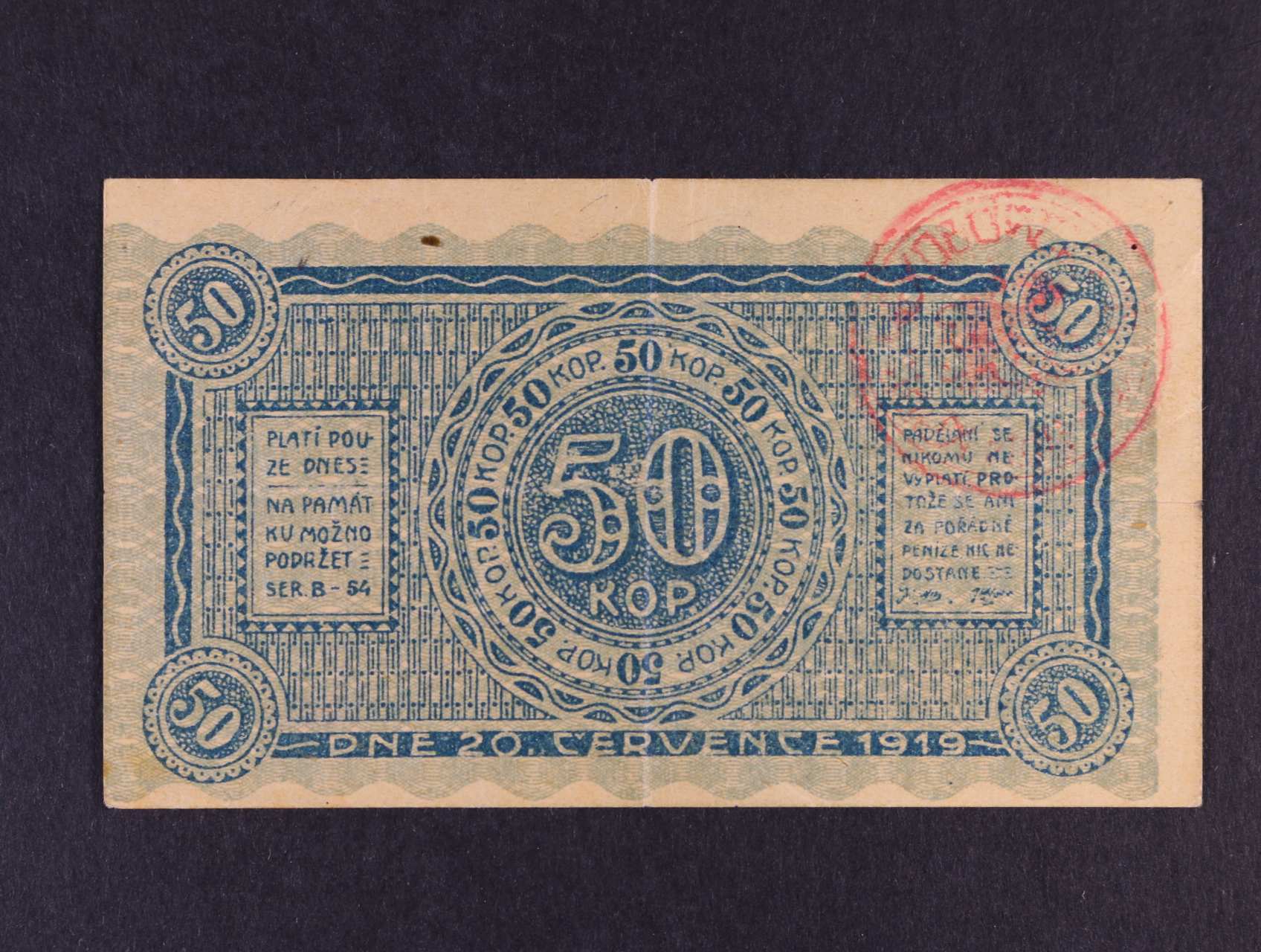 Legionářské poukázky, 50 Kop. 20.7.1919 platí pouze dnes, na A červené raz.