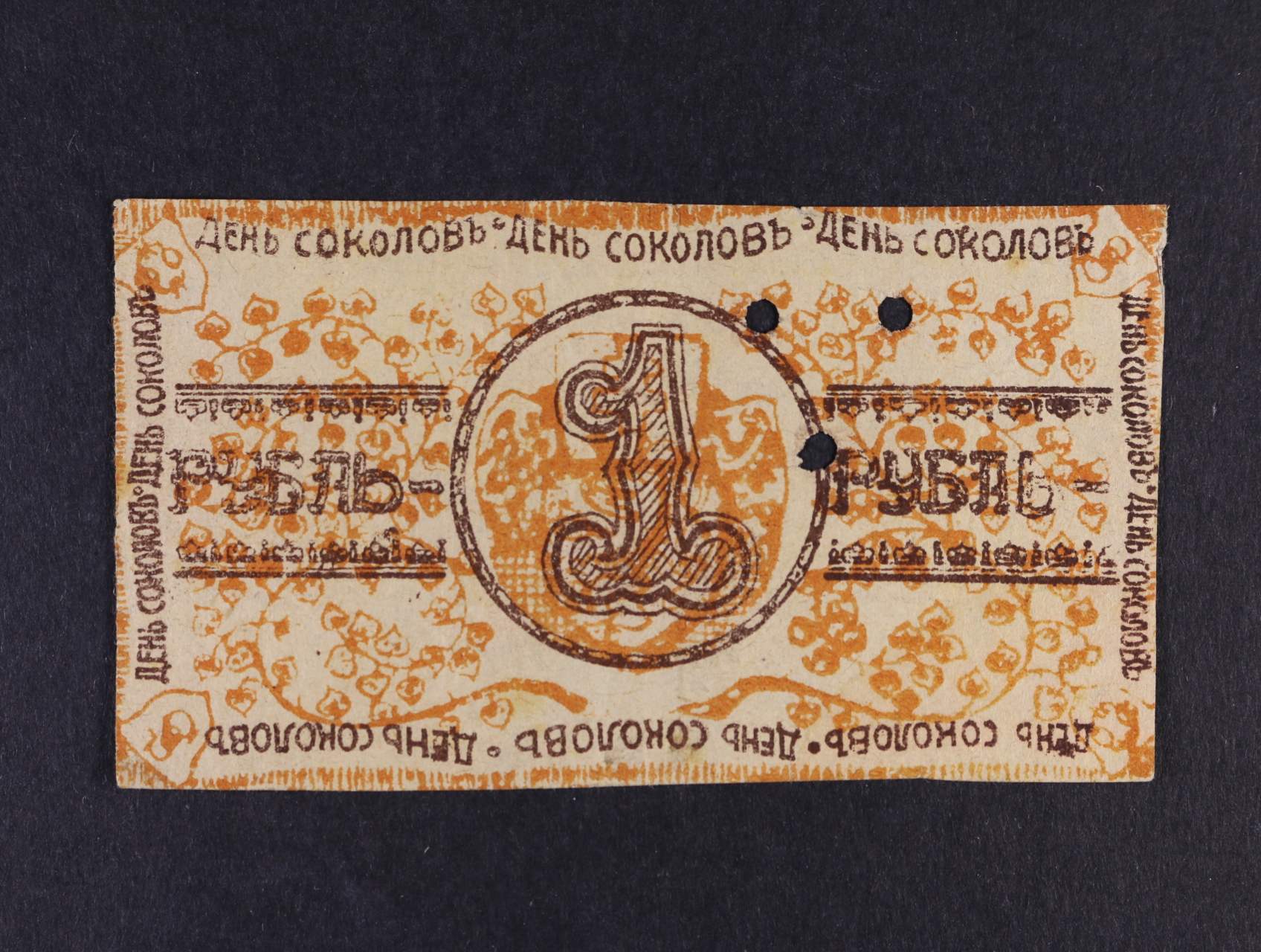 Legionářské poukázky, 1 Rubl b.d. Deň sokolov, 3x perf. otvor