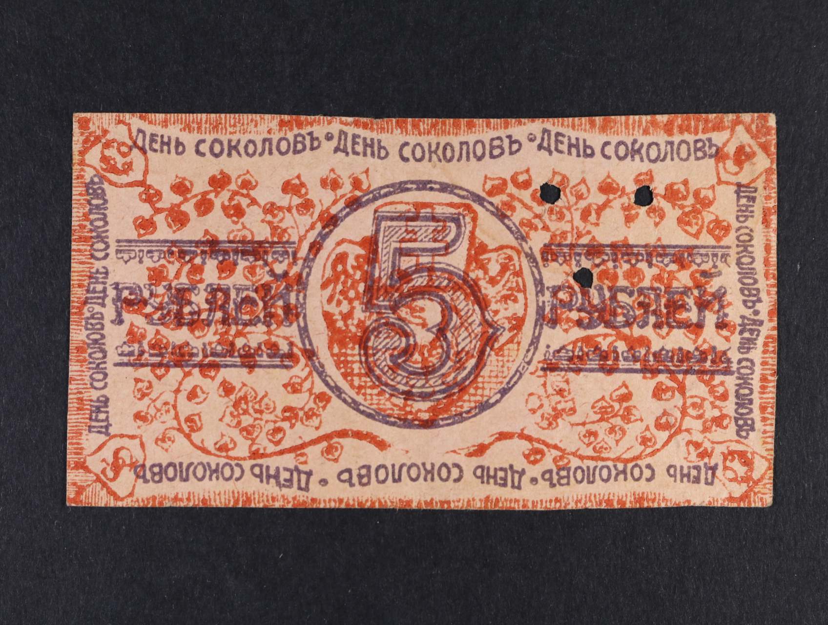 Legionářské poukázky, 5 Rubů b.d. Deň sokolov, 3x perf. otvor