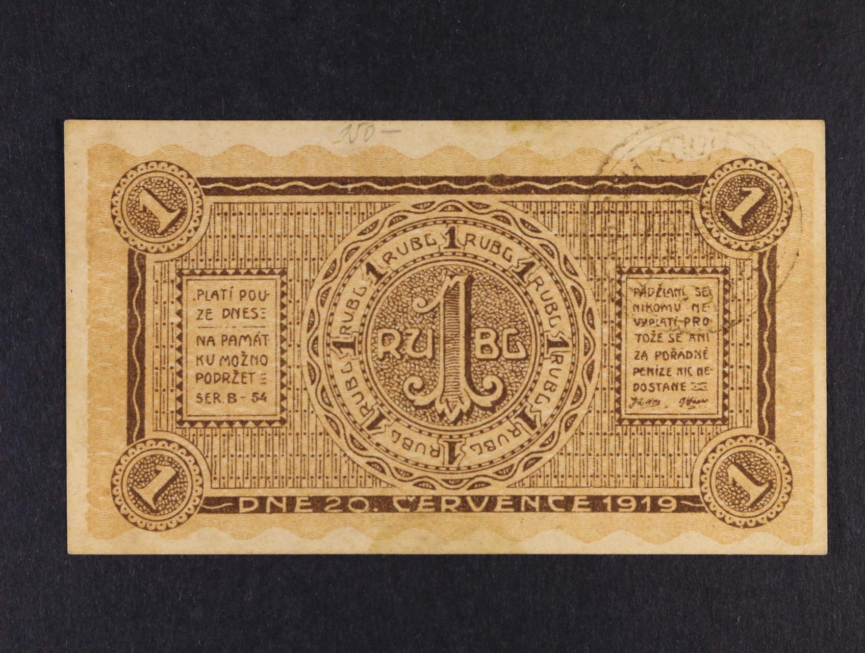 Legionářské poukázky, 1 Rubl 20.7.1919 platí pouze dnes, na A černé raz.
