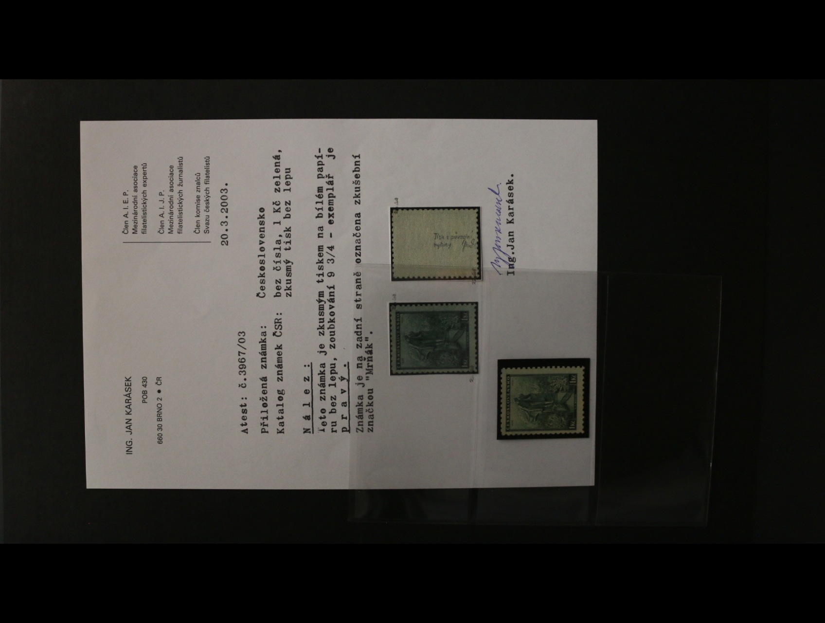 ZT zn. č. 299 v zelené barvě na bílém papíře bez lepu se zkusmým zoubkováním 9 3/4, zk. Mrňák, atest Karásek, velmi zajímavé, vzácné
