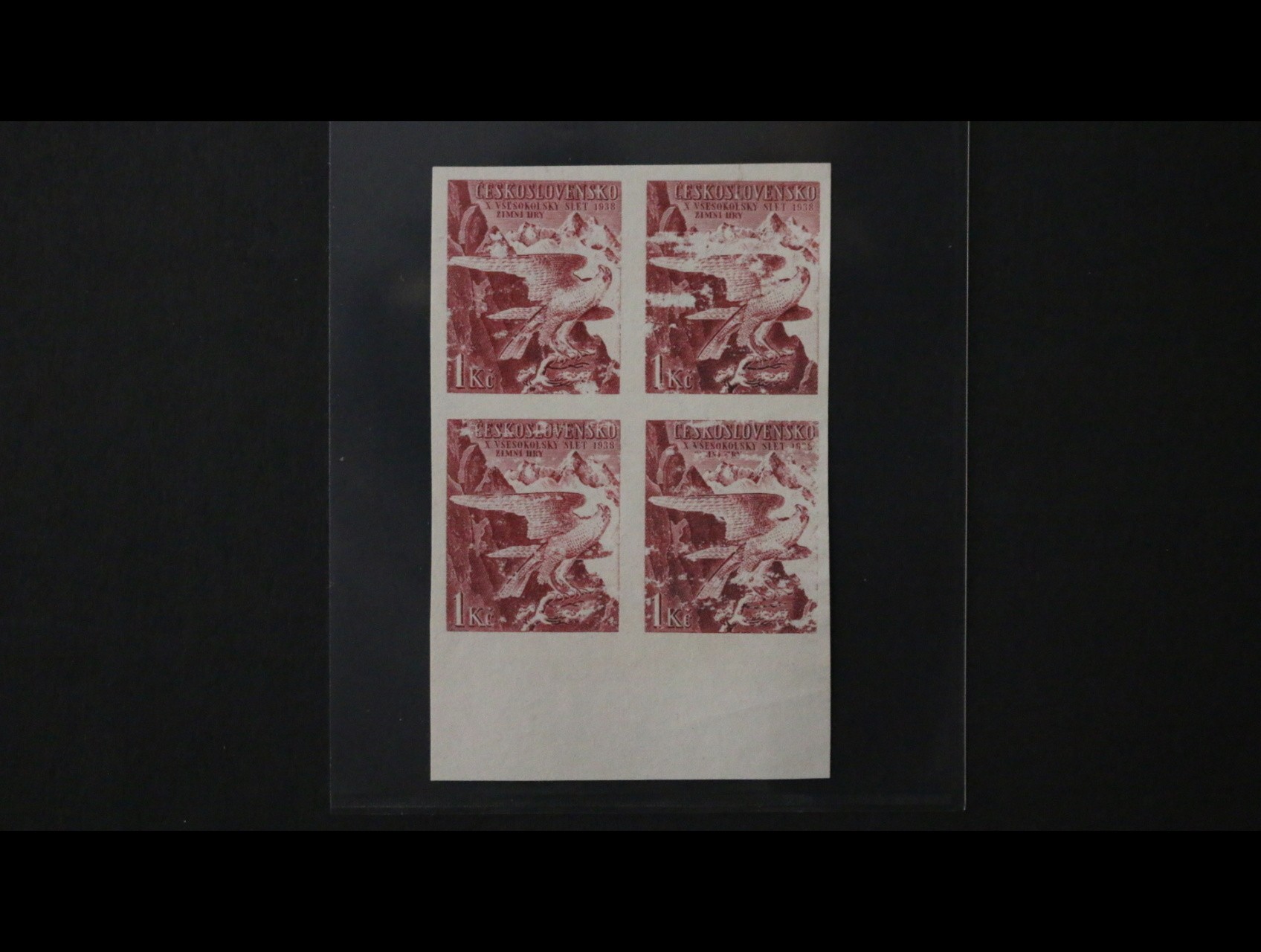 nevydaná zn. 1Kč ve čtyřbloku s horním okrajem v barvě modré