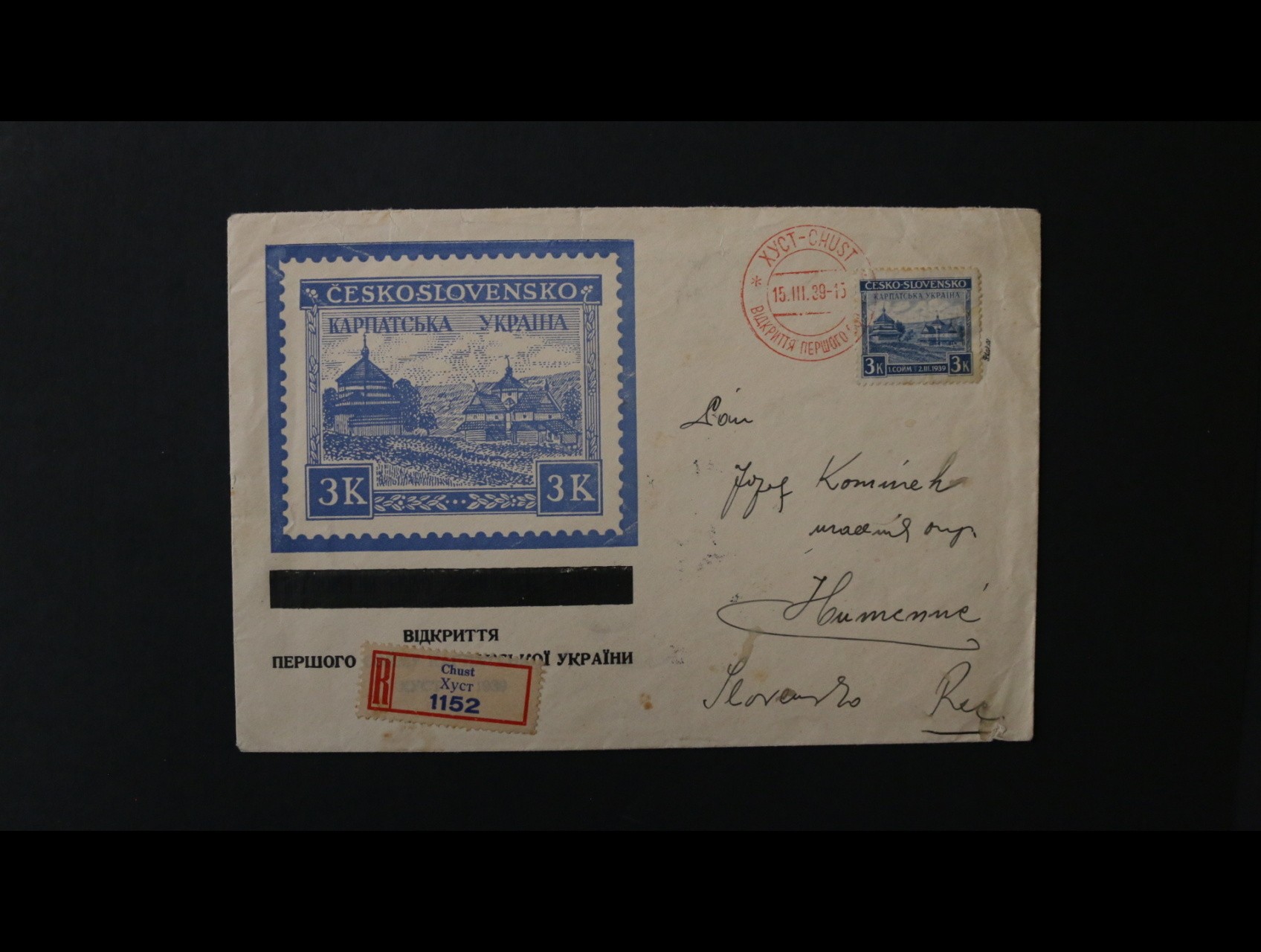 oficielní R-obálka k otevření 1. sněmu Karpatské Ukrajiny frank. zn. 351 s červeným pod. dvojjazyčným raz. CHUST 15.3.39, na zadní str. přích. raz. HUMENNÉ 23.3.39, zk. Blaha